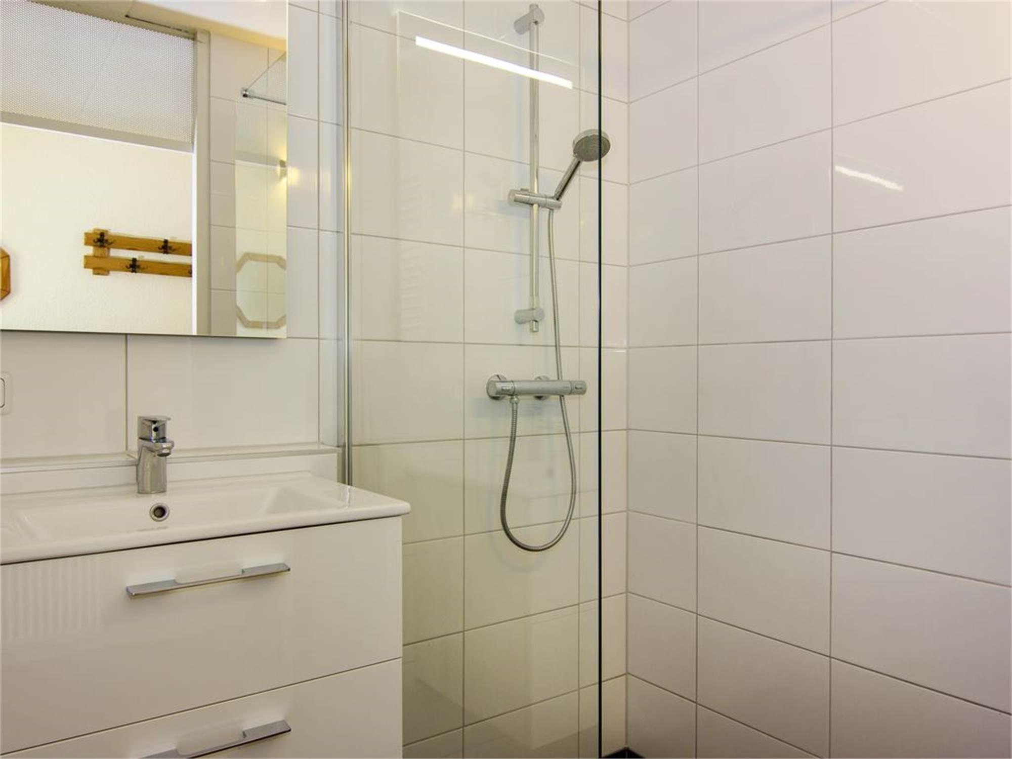 Bathroom with shower cubicle and washbasin