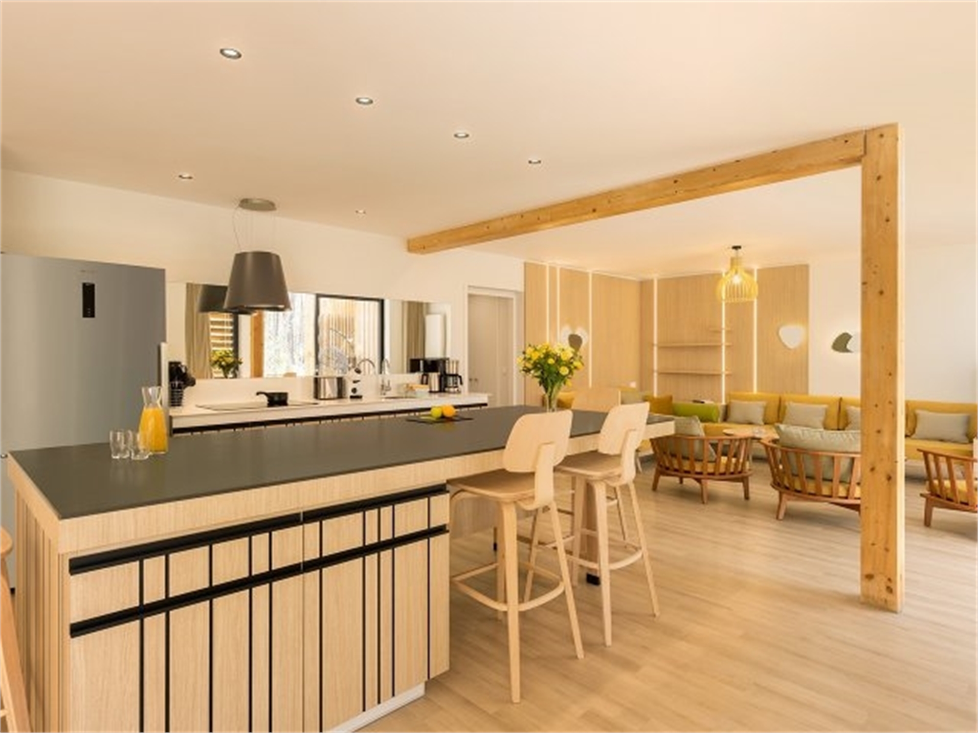 The spacious living rooms in the VIP cottage VIP have large bay windows overlooking a private patio and natural scenery. Enjoy the bathroom with the bubble bath and hammam, plus the range of exclusive welcome services.