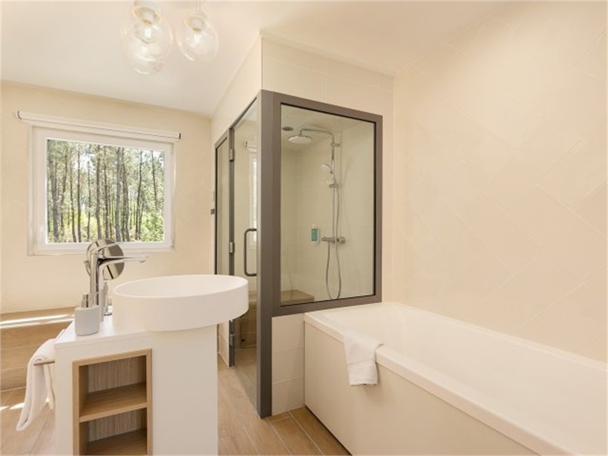 The spacious living rooms in the VIP cottage VIP have large bay windows overlooking a private patio and natural scenery. Enjoy the bathroom with the bubble bath and hammam, plus the range of exclusive welcome services.
