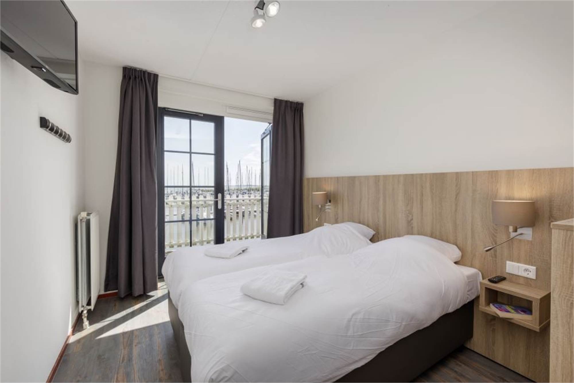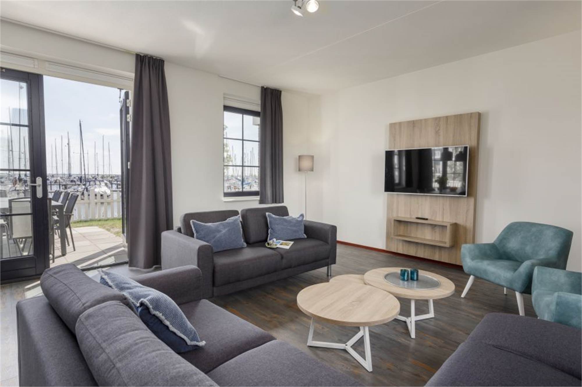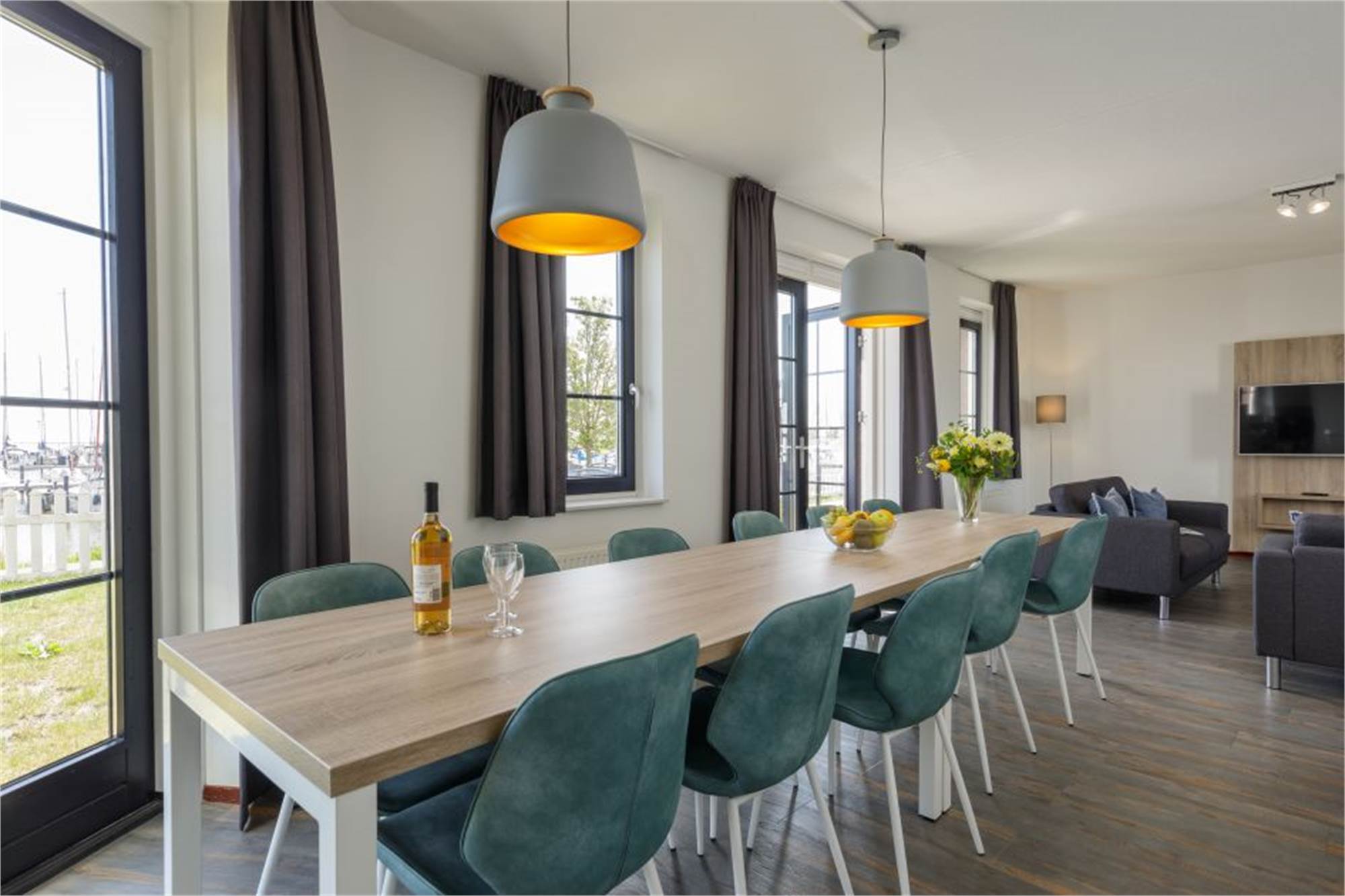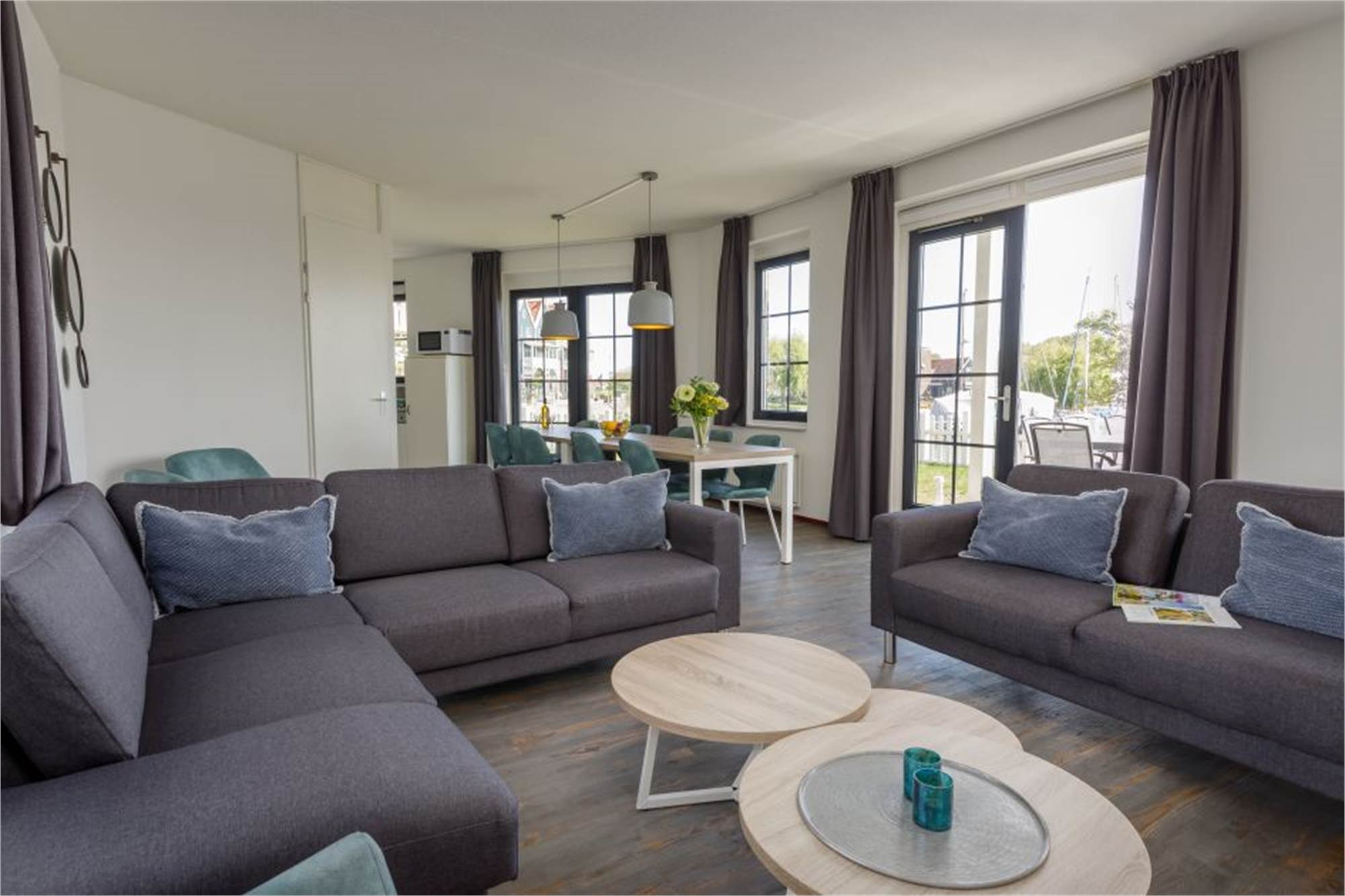 This family villa sleeps 11 and has a living room with a smart TV. Adjacent is the open-plan kitchen, which is equipped with a dishwasher, a filter coffee maker and a microwave. A separate toilet can be found in the hallway. There are 2 bedrooms upstairs furnished with 2 single beds, and another bedroom with 3 single beds. The first-floor bathroom is equipped a toilet, bathtub and shower. On the second floor you will find a bedroom with 4 single beds. Here, you will also find the second bathroom, which has a shower and a toilet. The villa has a furnished patio which overlooks the marina. Wi-Fi is available free of charge. You can park in the main car park.