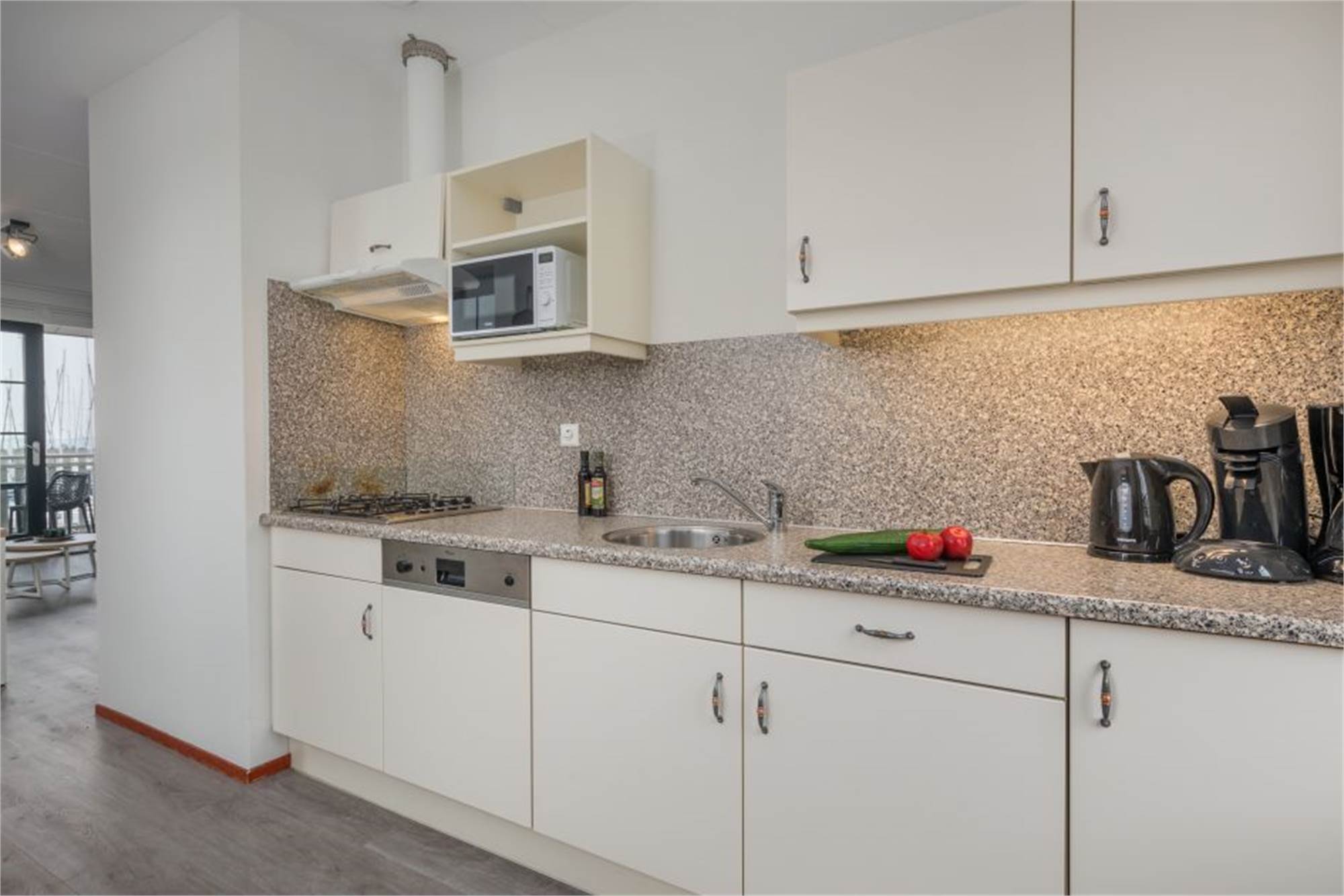 This link-detached bungalow sleeps four. The first floor includes the living room with smart TV, and a kitchen including a coffee pad machine, microwave and dishwasher. There is also a separate toilet. From the living room, you step onto the balcony, with patio furniture and a view of the marina. On the second floor, there are 2 bedrooms with 2 single beds each, and 1 bathroom with a shower. Wi-Fi is available free of charge.
