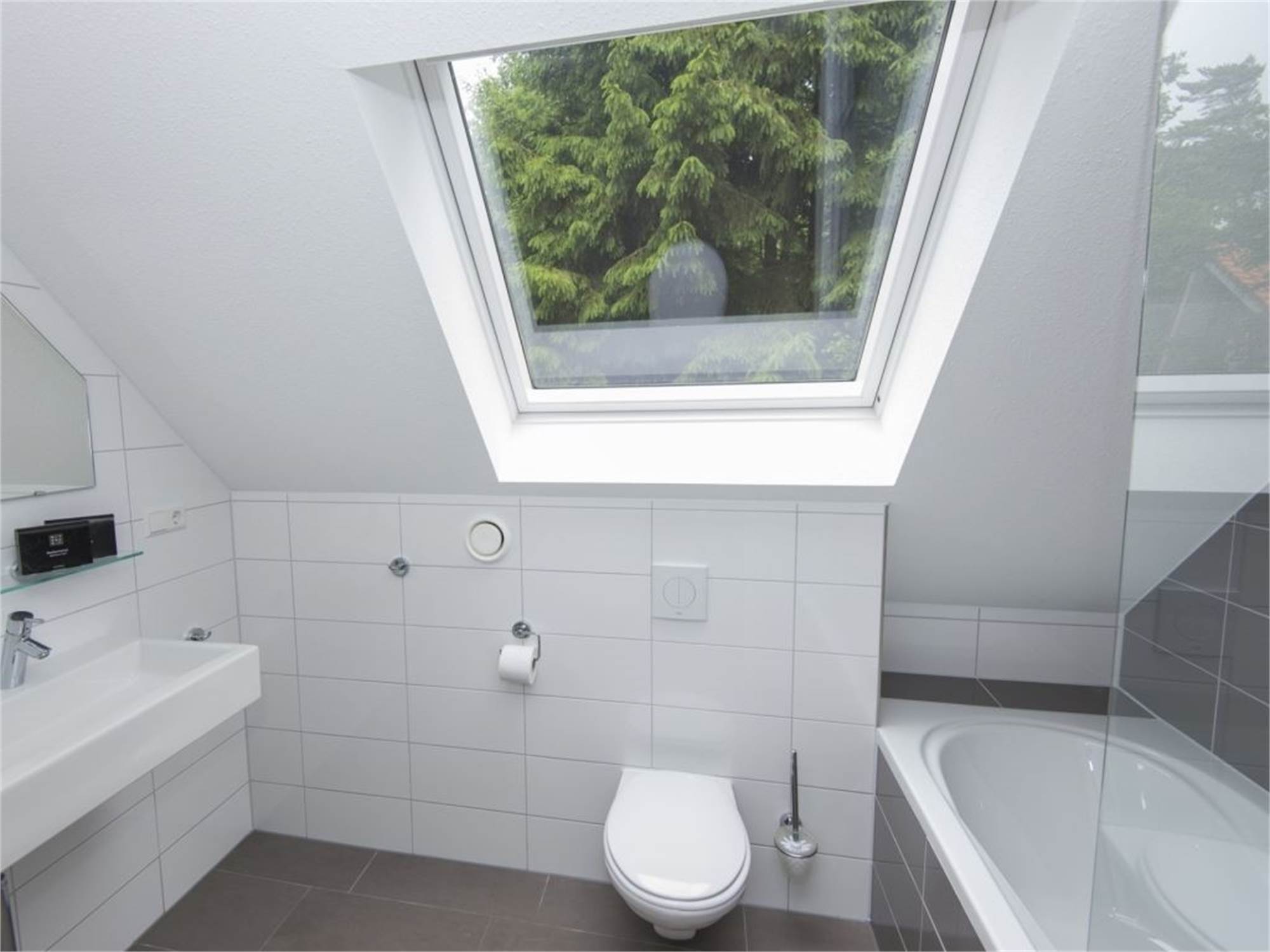 Bathroom with bathtub, washbasin and toilet on the first floor