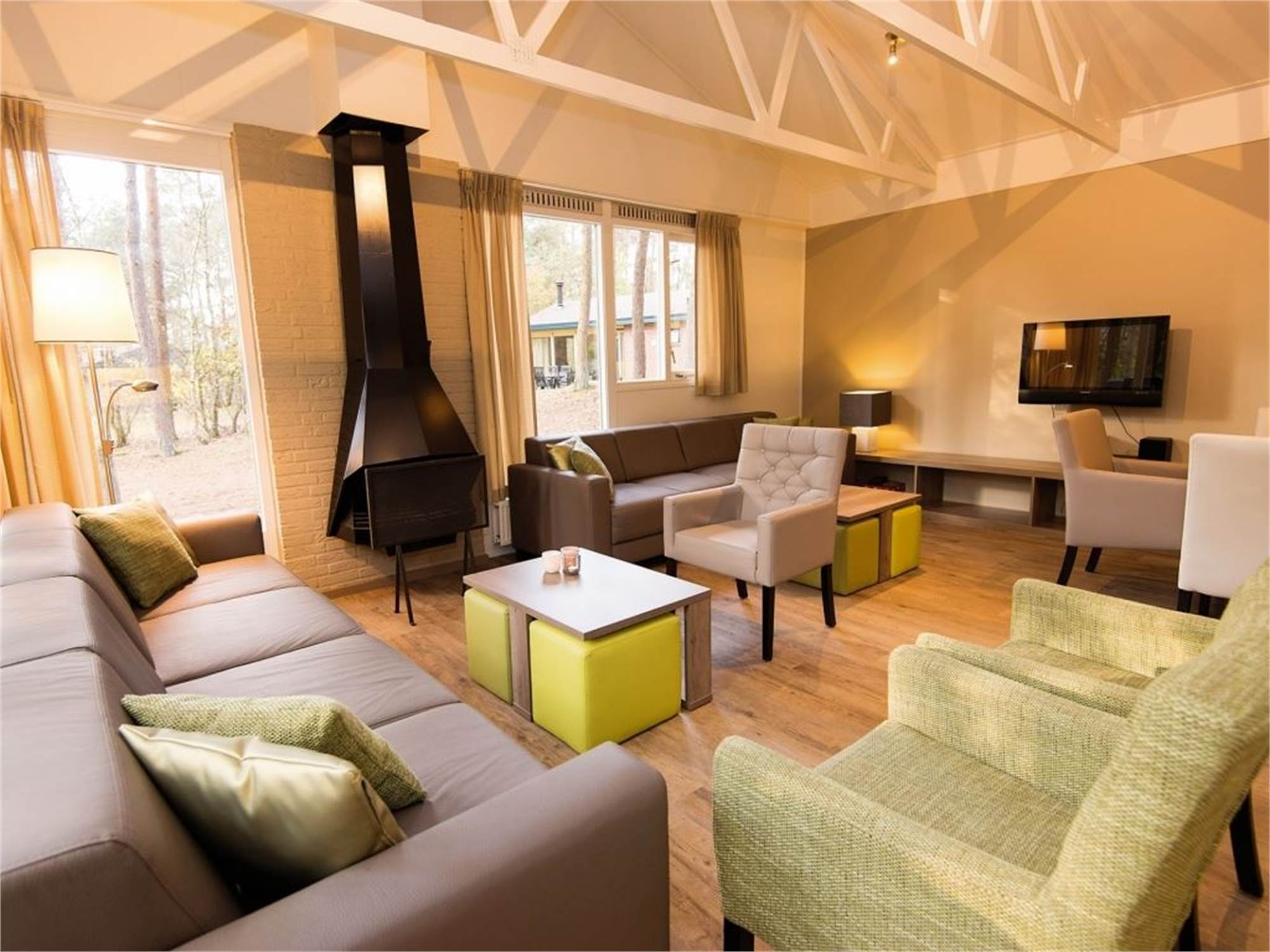 The living accommodation is laid out like a large living room for 18 people with a large kitchen-dining area
