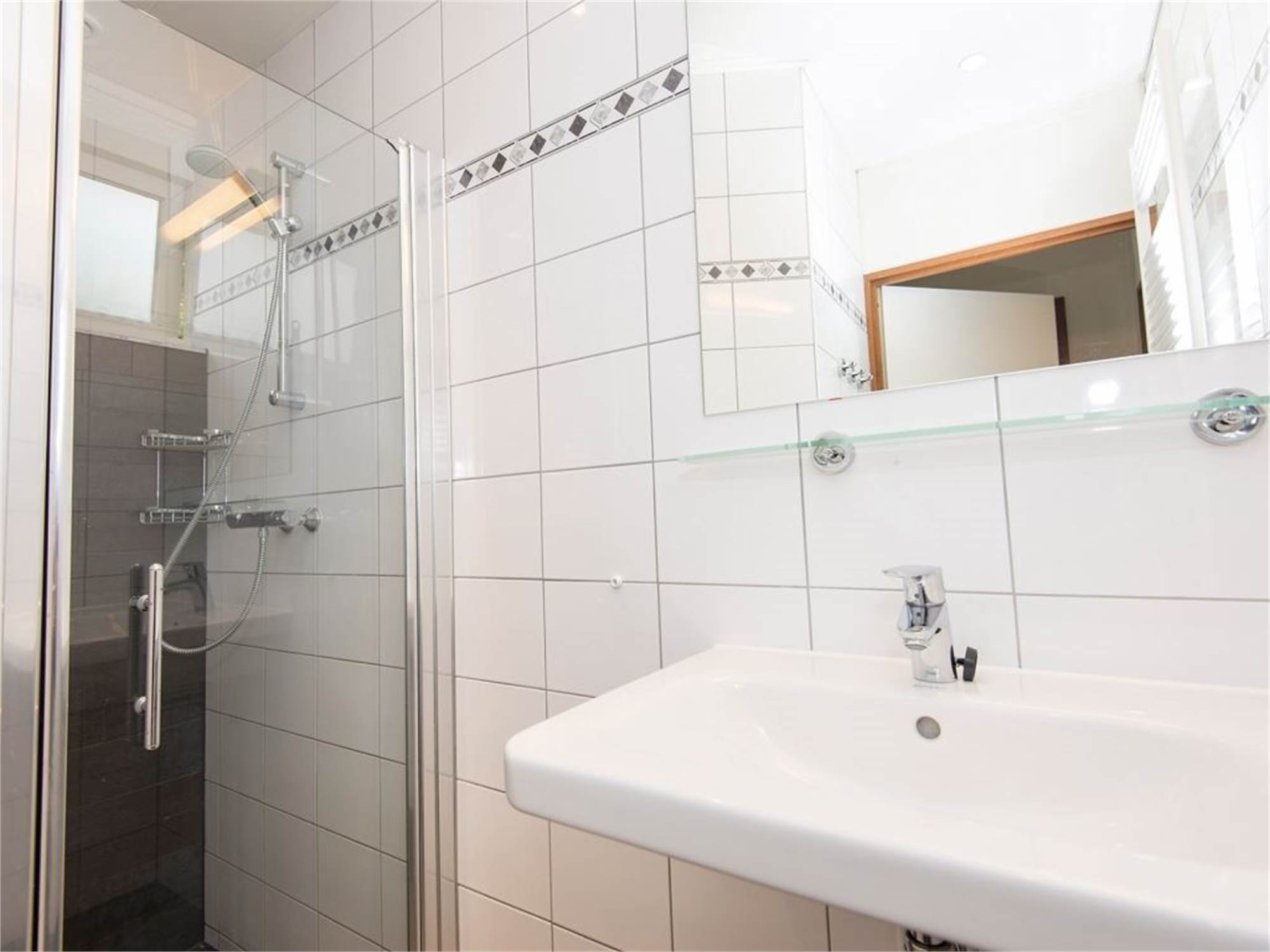 Bathroom with shower cubicle and washbasin