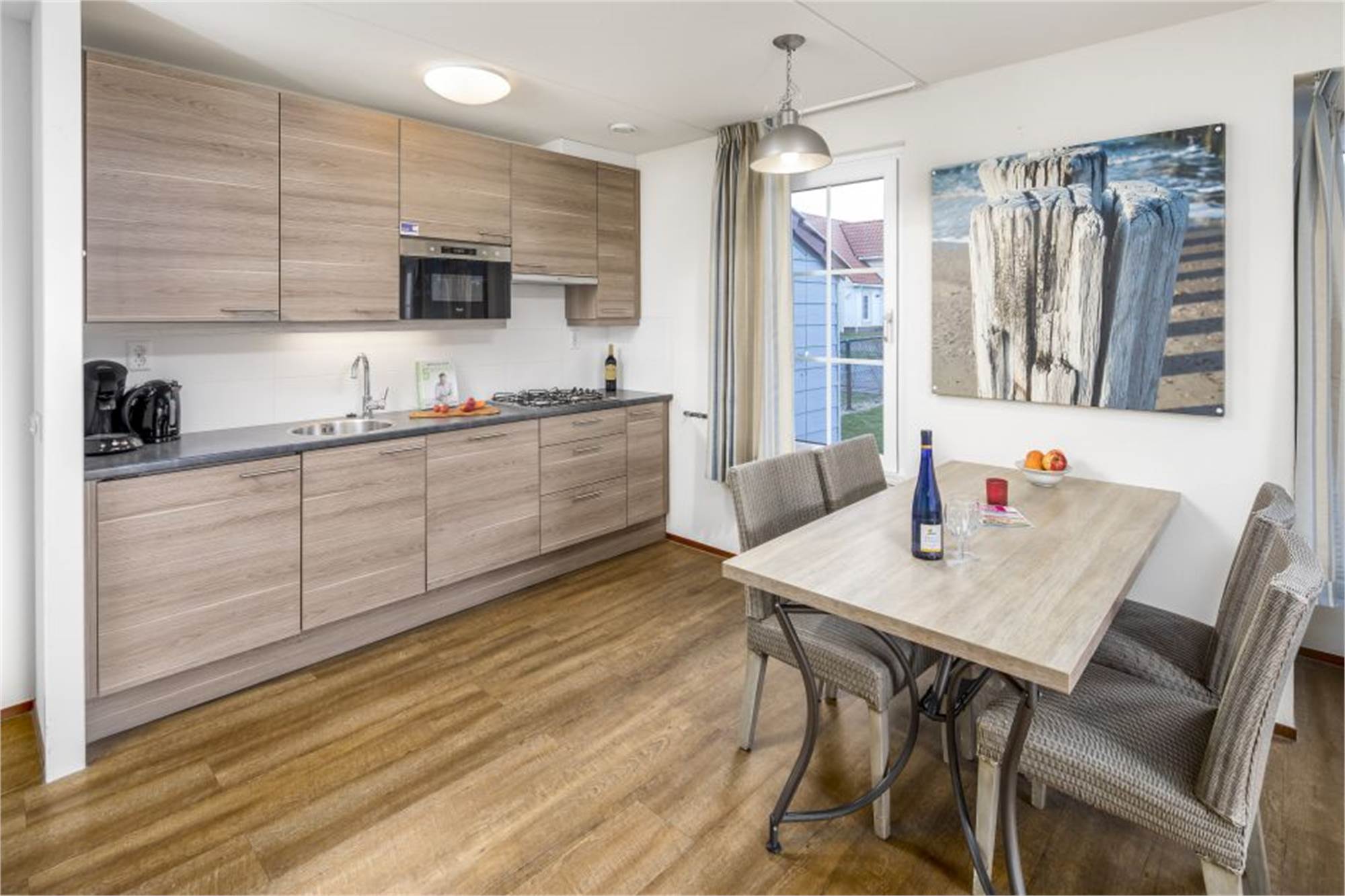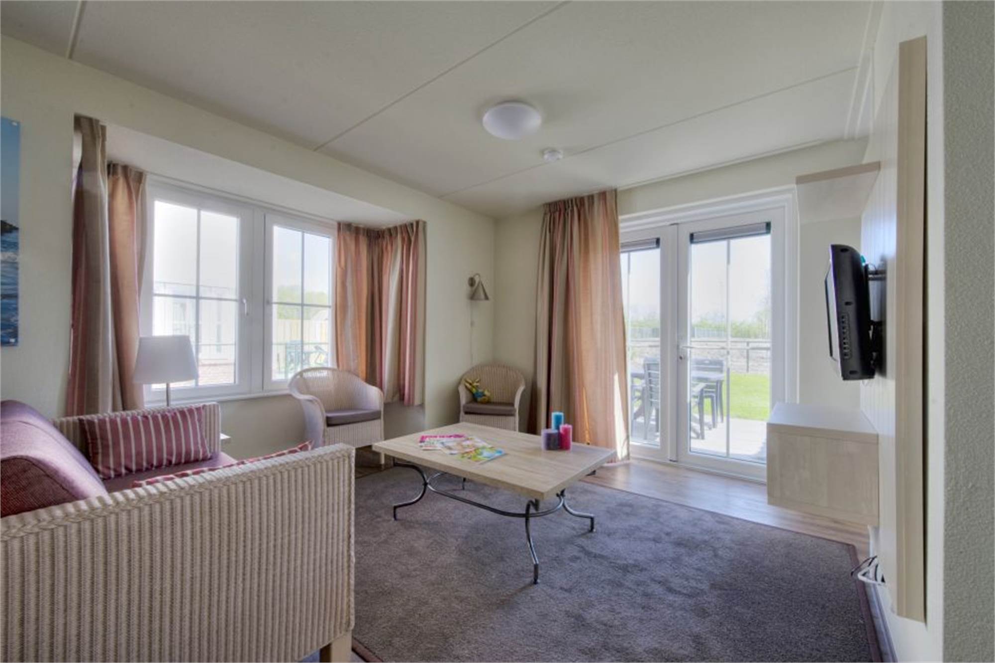 This bungalow has three camping beds (excl. Matrass), three high chairs, three playpens, three baby baths and a kids wagon, a stair gate, child-proof electrical outlets and a fenced garden. The use of Wi-Fi is free of charge.