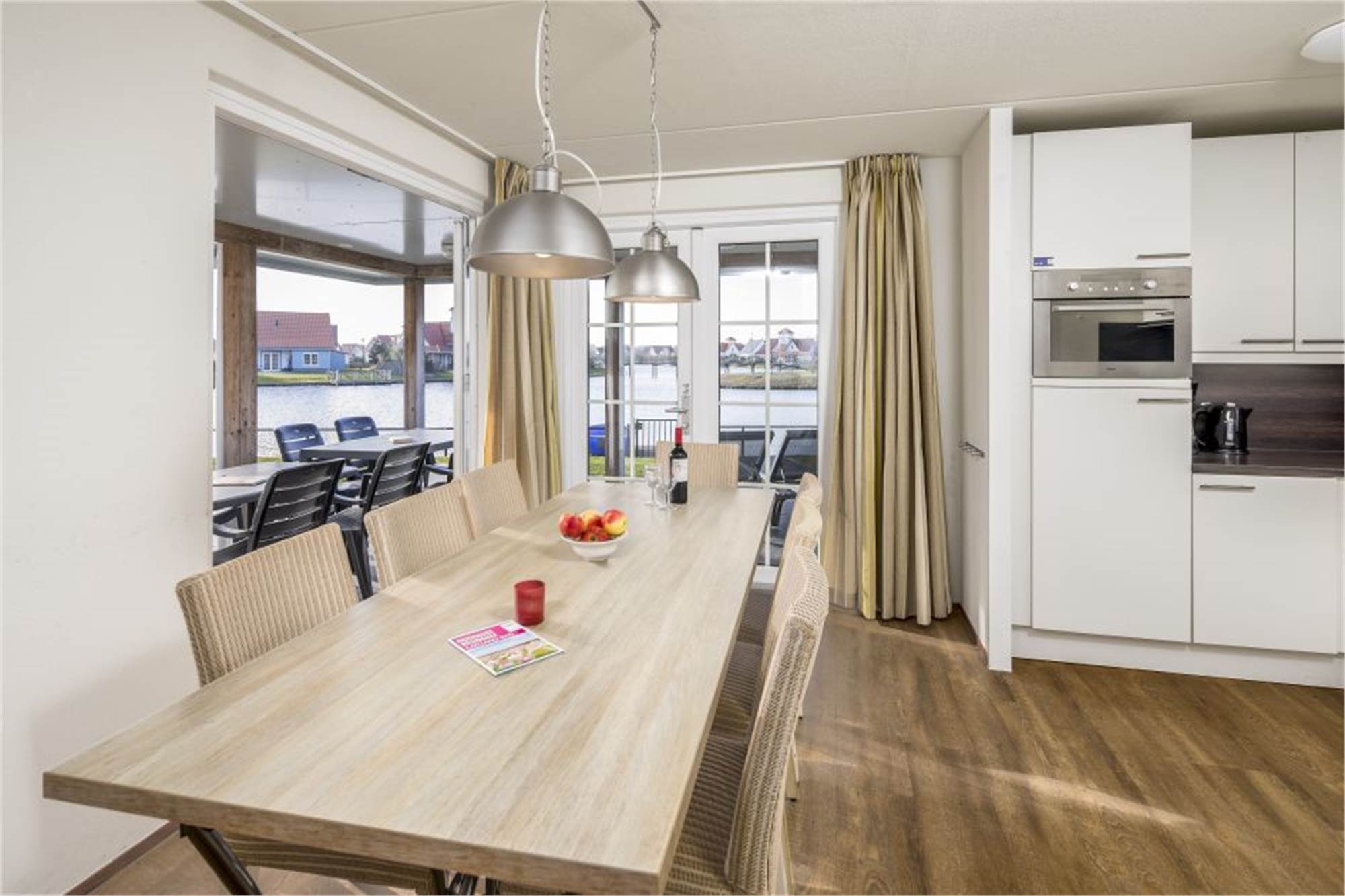 This detached villa, which is located directly on the waterfront, sleeps 9 adults and 1 baby, and has been equipped with amenities especially for teens! Through the hallway you enter the sunny living room with underfloor heating and French doors leading directly onto the covered terrace. The villa is equipped with an Xbox 360. The kitchen is fully equipped with a dishwasher, a microwave and a refrigerator/freezer. One of the toilets is located on the ground floor as is a bedroom with television and adjoining bath. There is also a storage closet. The upper storey has four bedrooms, a bathroom with a shower and a sauna and a separate toilet. One of this accommodation’s unique features is the tower room, with a single bed. If you wish, you can also reserve a child+ package containing a travel cot, high chair, baby bath, playpen, Koos Club children’s dinnerware set and a wooden handcart for your child to be pulled around in. Please note that preference surcharges apply. If you are bringing along your bikes, you can park them in the outdoor shed.