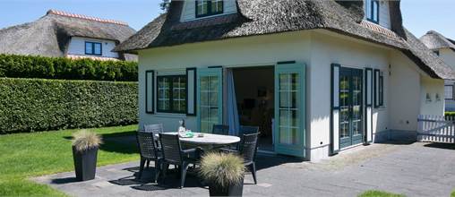 This detached villa with thatched roof is suited for 8 persons. The living room has a lounge corner with television and a separate dining corner. The kitchen offers you a refrigerator with freezer, a microwave and a dishwasher. The upper floor has 4 bedrooms with a total of 8 single box spring beds. There are 2 bathrooms, 1 upstairs and 1 downstairs. The accommodation also has a separate toilet. The terrace is fitted with garden furniture and you can make free use of the Wi-Fi.