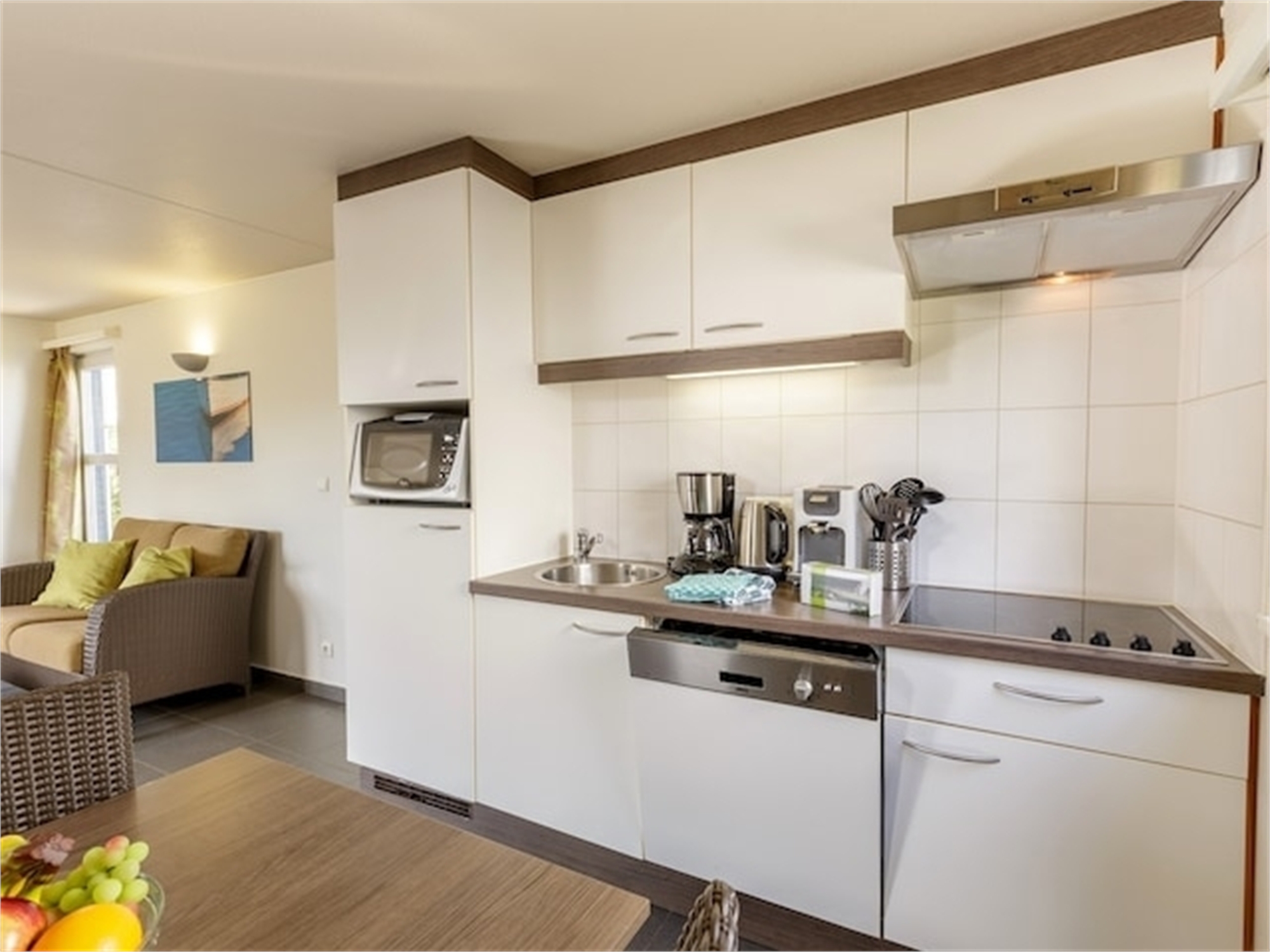 An Exclusive holiday house, enjoying greater comfort with ready-made beds and towels. The holiday houses have a living room with TV, fully equipped kitchen with dishwasher, bathroom with infra-red sauna, bedrooms and a private garden with garden furniture.