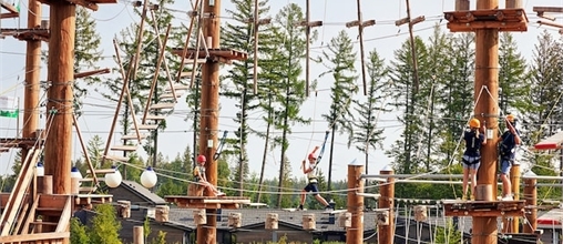 Various challenging courses at heights of 1 to 8 m (under 10 years max. 4 m height) await daredevils in our impressive high ropes course with exciting climbing elements and various rope slides. After instruction, you climb under the supervision of experienced climbing instructors with no time limit. Book now and climb at a session of your choice.