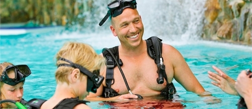 Always wanted to experience what it's like to breathe underwater? Diving is a fantastic sport! This introductory lesson starts with some theory, after which you go on a dive in the Aqua Mundo under the supervision of an instructor.