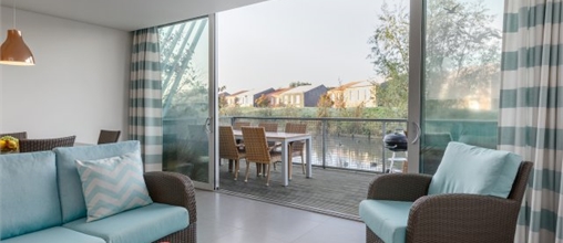 Sit down on your private covered terrace and enjoy panoramic views over the lake. In fact, all Lakeside cottages are right on the water. You will also have great views inside, courtesy of the large windows!