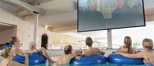 Watching a film by the pool is possible in the Aqua Cinema.