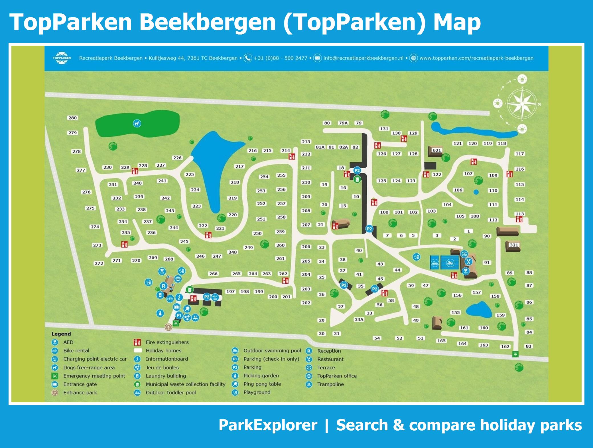 Up-to-date and comprehensive village map of TopParken Beekbergen with all accommodations and facilities, also available as PDF.