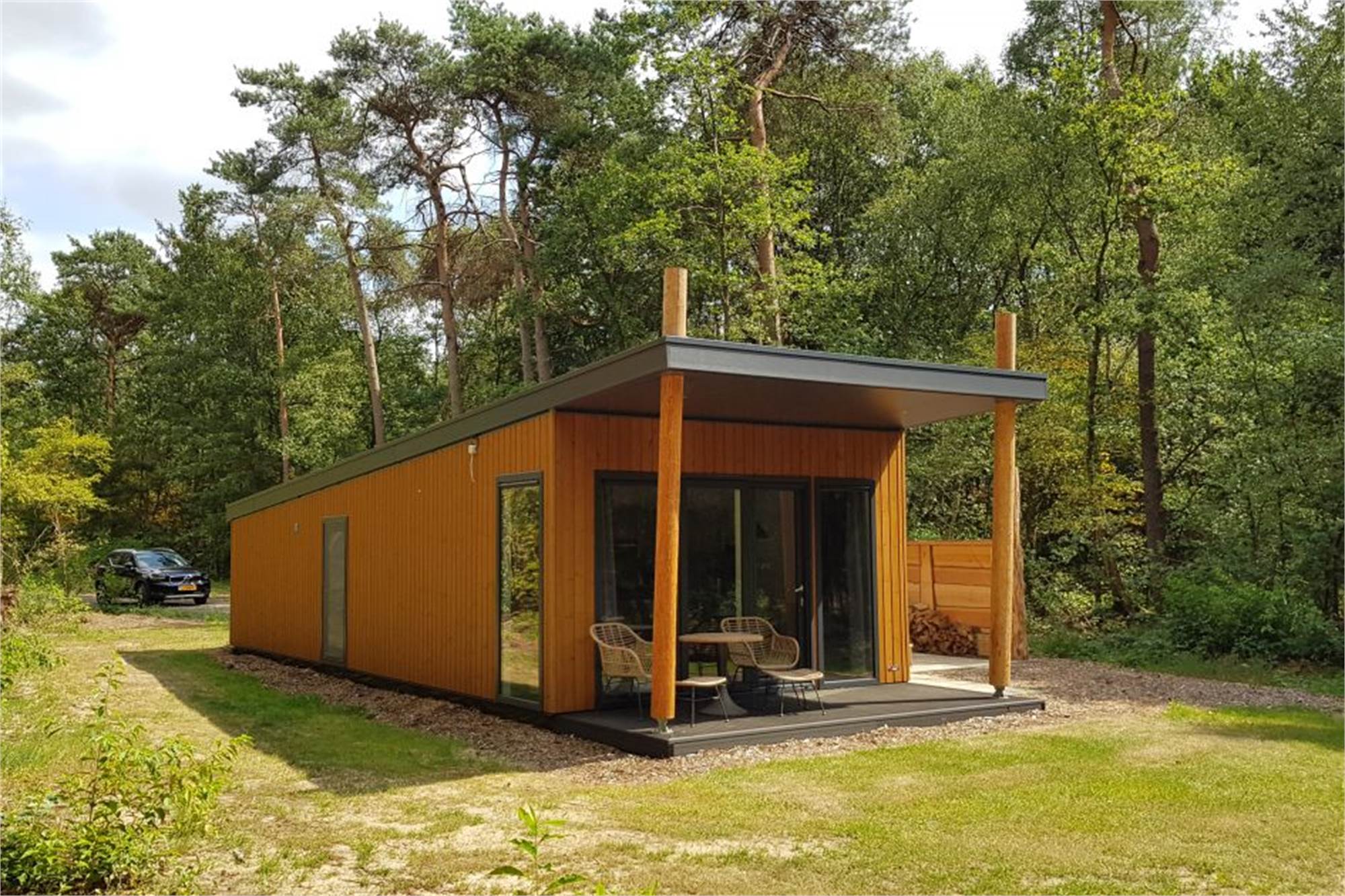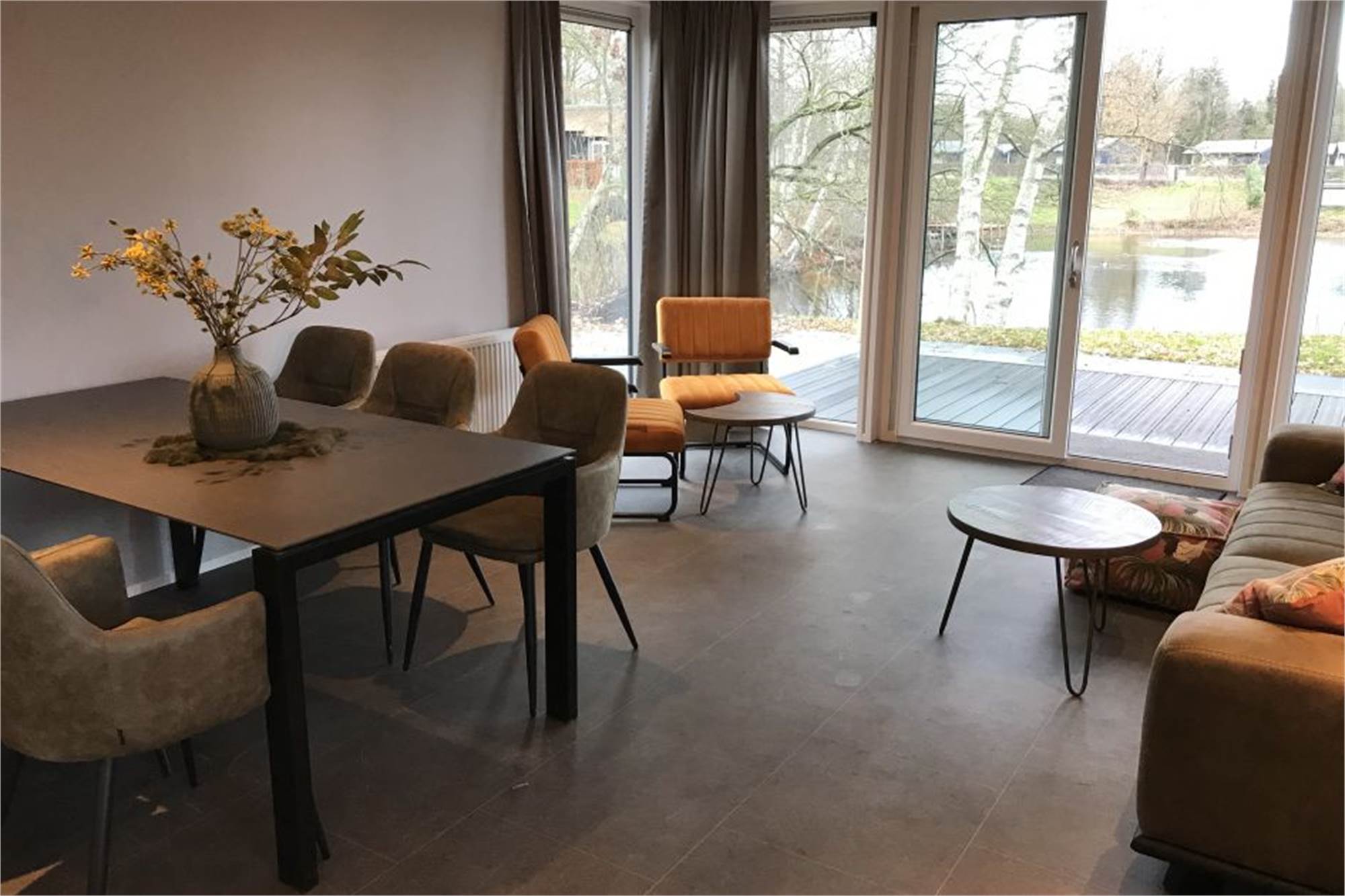 This single-storey bungalow sleeps 6 and has a living room with seating area and a smart TV. The kitchen includes a dishwasher, a combination microwave and a fridge with a freezer compartment. It has both a coffee pad machine and a filter coffee machine. There are 3 bedrooms, 2 with 2 single beds and 1 with a bunk bed. The bathroom has a walk-in shower and there is a separate toilet. The lodge has a garden with a veranda and a covered terrace with patio furniture. Parking space is available for 1 car at the lodge, and you can make use of the free Wi-Fi.