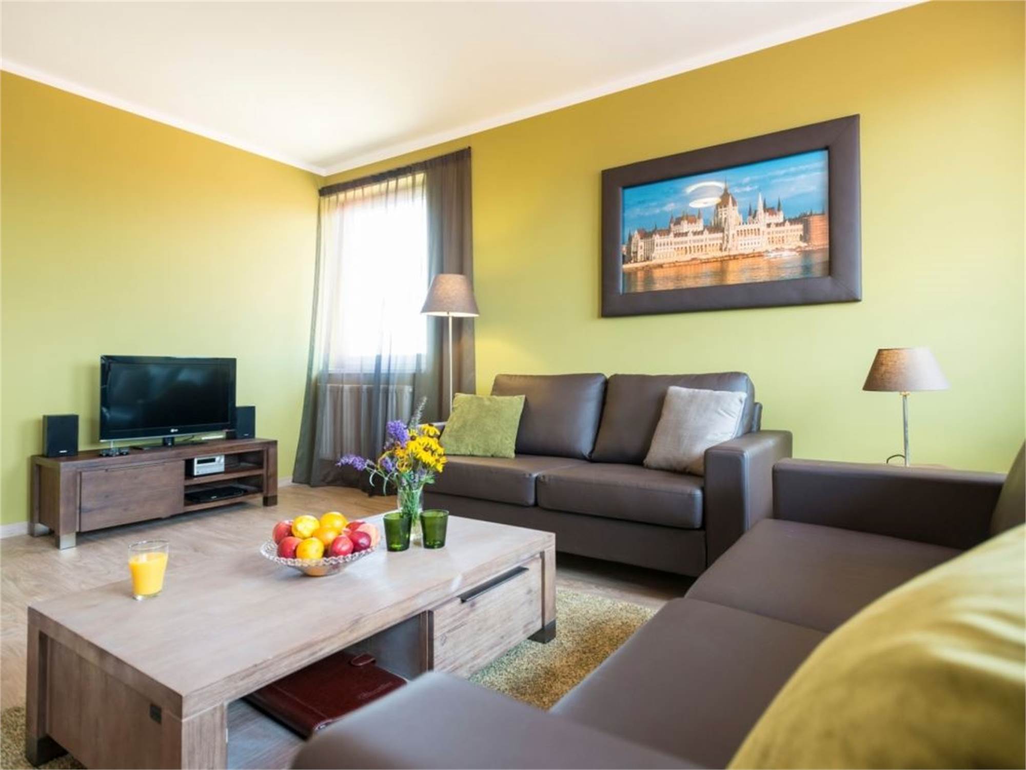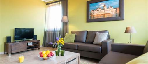 Bedroom with two single box spring beds, soft mattress topper and TV