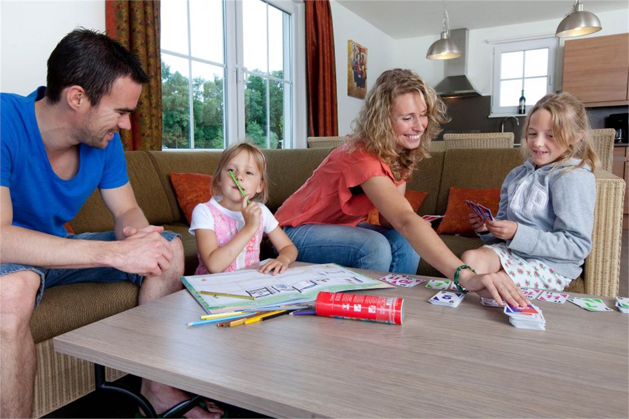 This detached luxury villa at Résidence Klein Vink is suitable for six adults and one infant/toddler. The entrance hallway brings you to the sunny living room with French doors to the terrace. The kitchen is equipped with top-range built-in appliances, including a dishwasher. On the ground floor is a bedroom with two twin beds and a washbasin. Upstairs are two attractive bedrooms, both with two twin beds. One of the upstairs bedrooms has an extra child's bed. Enjoy the comfort of two bathrooms, one of which has a bathtub, and the other a sauna. There are separate toilets on both floors. There is also a washing machine and a dryer in the storage room. You will also find a high chair, playpen and baby bath in the villa, and can rest assured that the safety of your child has been taken into consideration. Wi-Fi is available free of charge.
