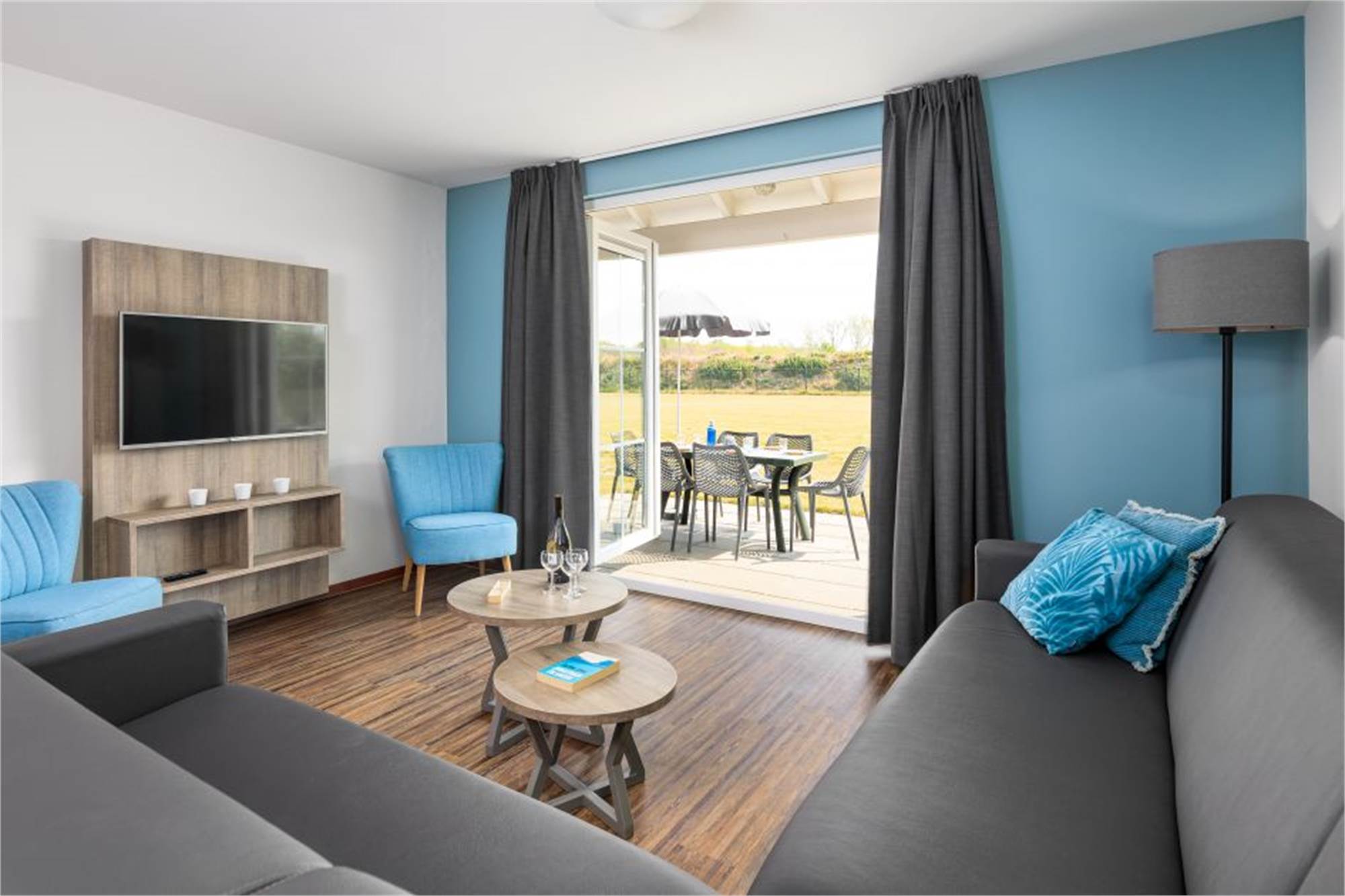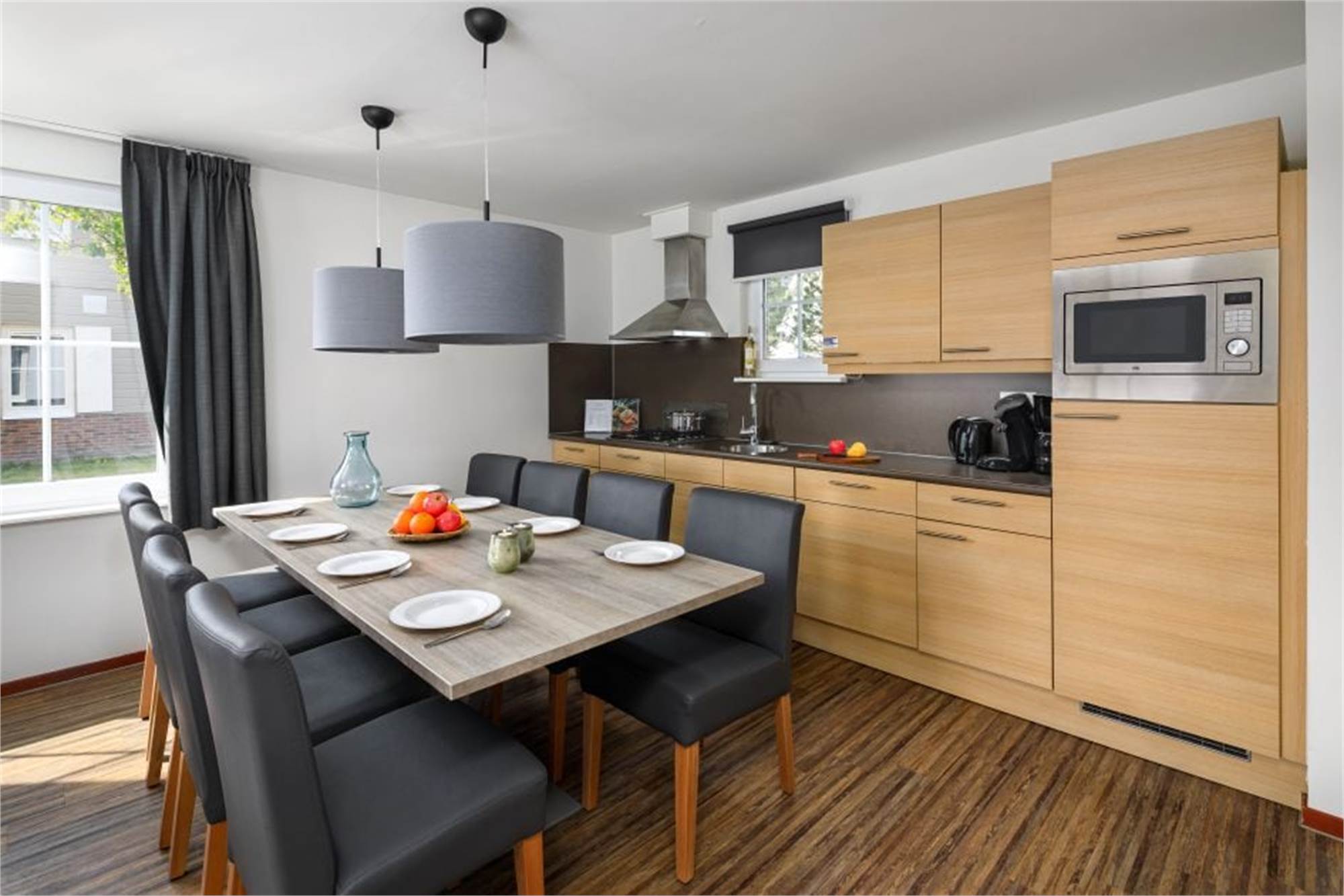 This restyled, luxury villa at Résidence Klein Vink is suitable for eight people. The entrance hallway brings you to the sunny living room with French doors to the terrace. The kitchen is equipped with top-range built-in appliances, including a dishwasher, and with a microwave-oven and coffee maker. On the ground floor is a bedroom with two twin beds and an adjoining bathroom. Upstairs are two attractive bedrooms, both with two twin beds. Enjoy the comfort of two bathrooms, one of which has a shower and a bathtub and one with a shower. There are separate toilets on both floors. There is also a washing machine in the storage room. Wi-Fi is available free of charge.