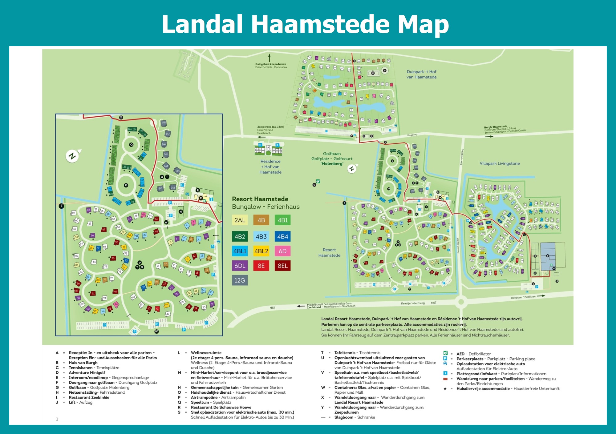 Up-to-date and comprehensive village map of Landal Haamstede with all accommodations and facilities, also available as PDF.