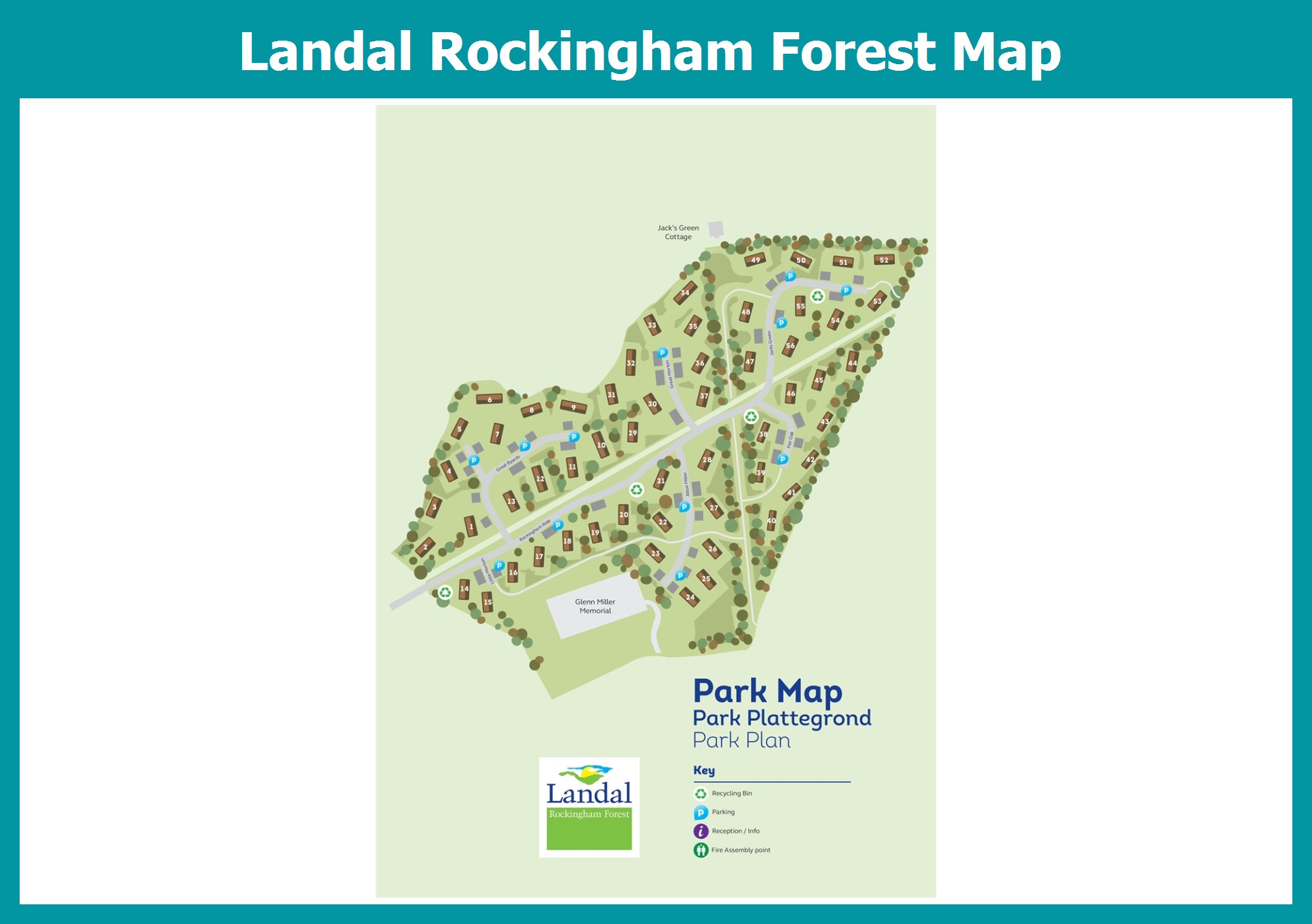Up-to-date and comprehensive village map of Landal Rockingham Forest with all accommodations and facilities, also available as PDF.