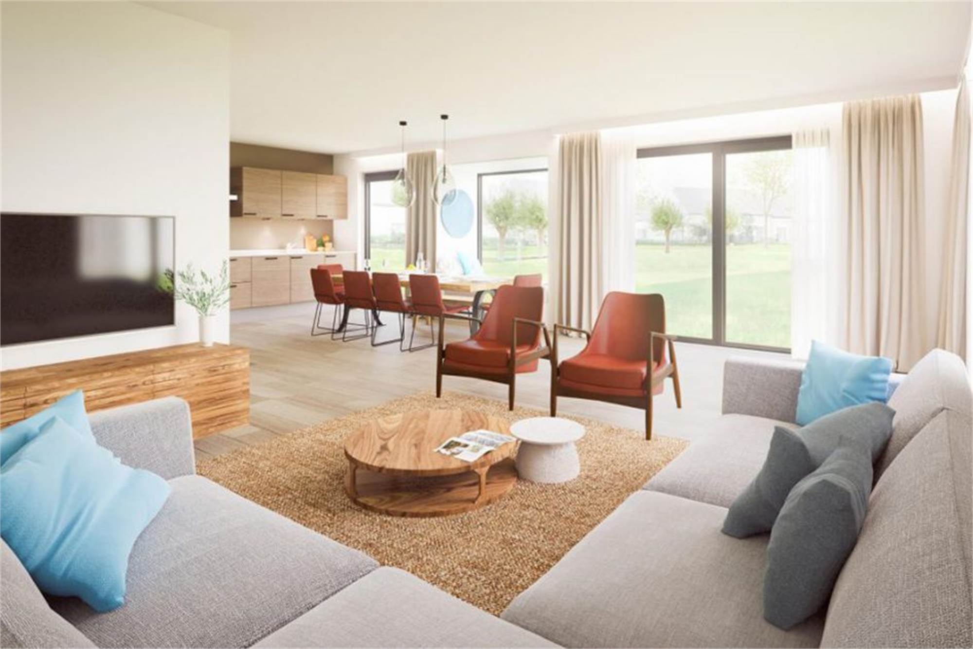 • The living room has a seating area with corner sofa, a TV and dining table with chairs. An added bonus: a bay window to settle down in.