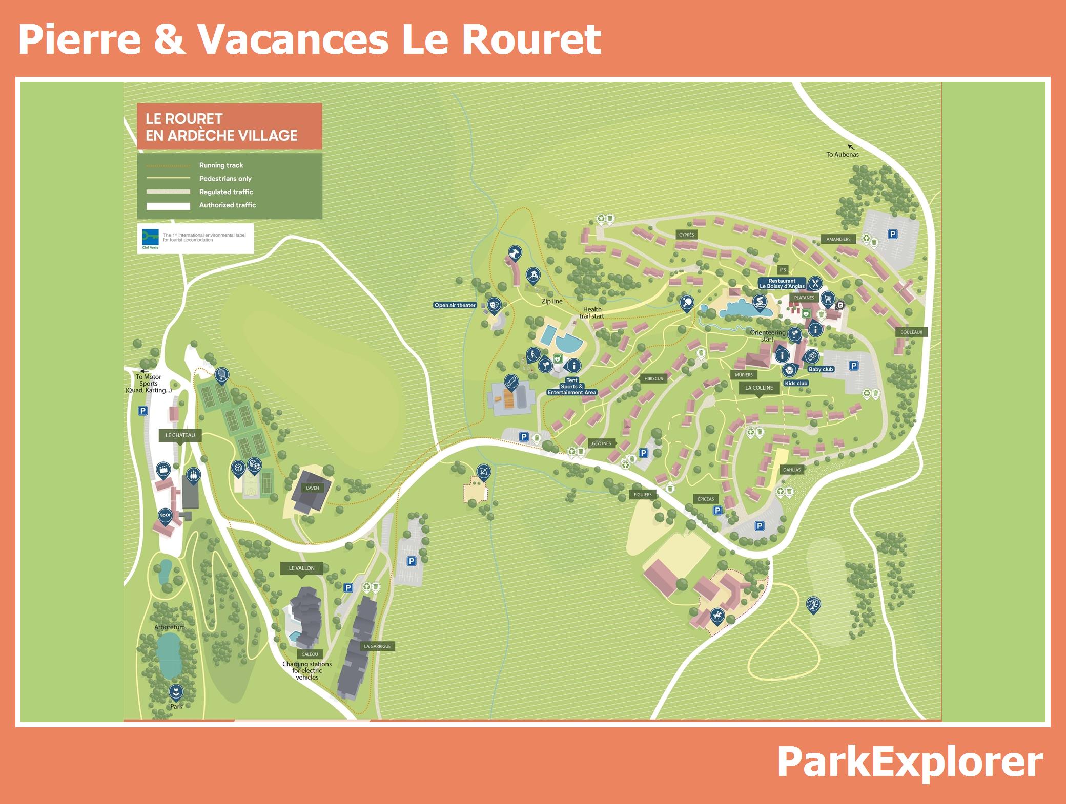 Up-to-date and comprehensive village map of Pierre & Vacances Le Rouret with all accommodations and facilities, also available as PDF.