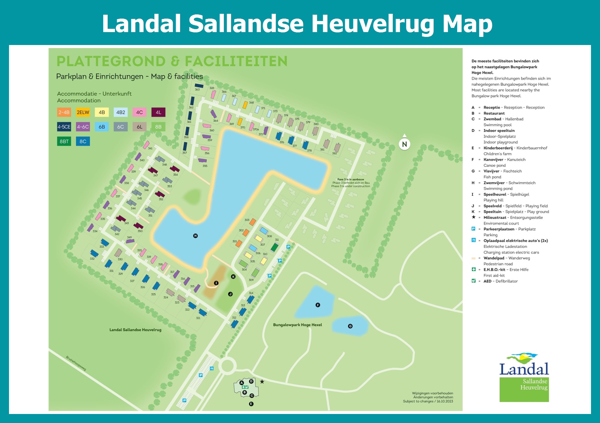 Up-to-date and comprehensive village map of Landal Sallandse Heuvelrug with all accommodations and facilities, also available as PDF.