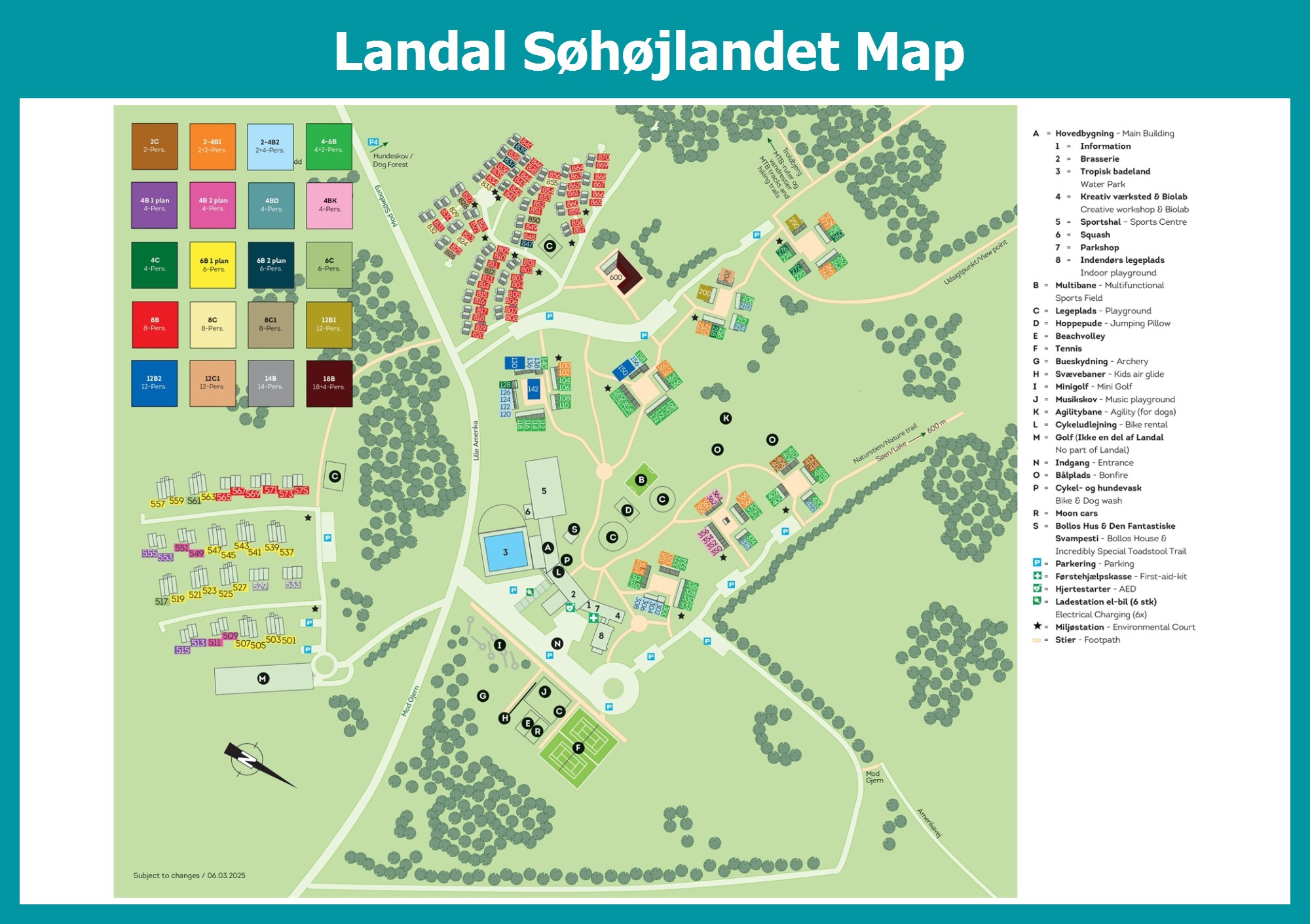 Up-to-date and comprehensive village map of Landal Søhøjlandet with all accommodations and facilities, also available as PDF.