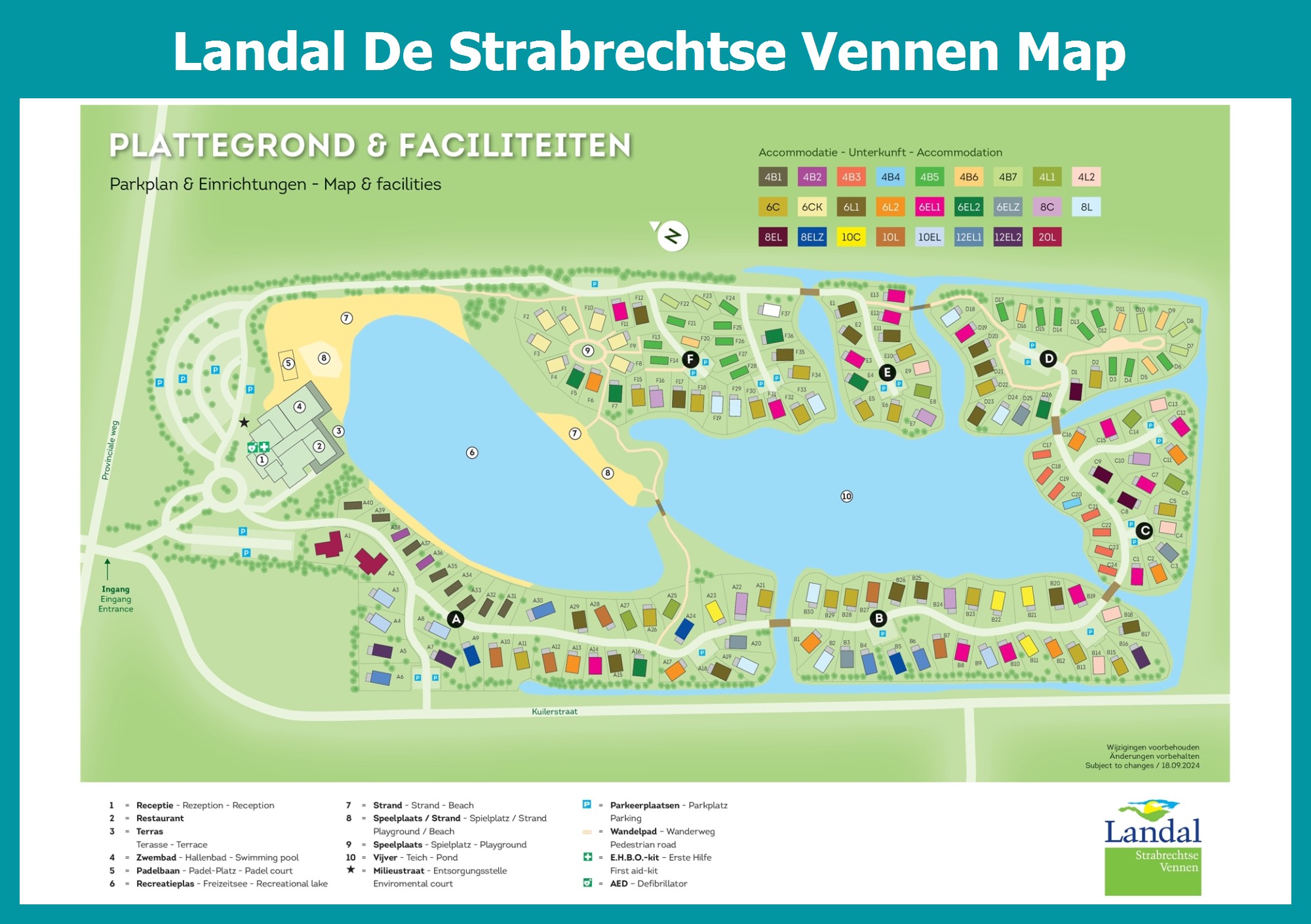 Up-to-date and comprehensive village map of Landal De Strabrechtse Vennen with all accommodations and facilities, also available as PDF.