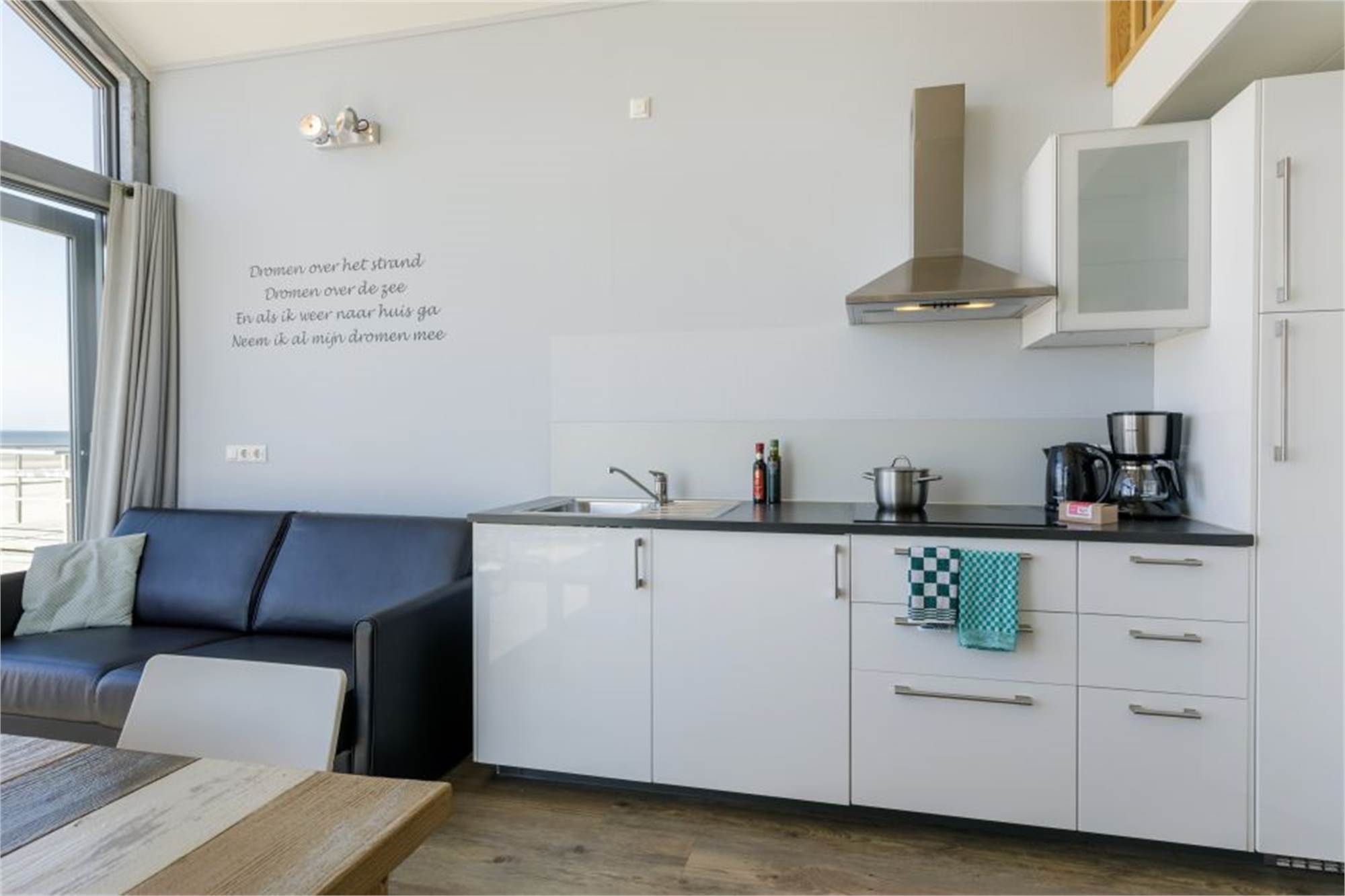This luxury detached Beach House can accommodate 4 to 6 people. The Beach House is located right on the beach, with stunning views across the beach and sea. The living room includes a double sofa bed and a smart TV. The kitchen is equipped with a microwave, fridge with freezer compartment, filter coffee machine and a kettle. There are 2 bedrooms, 1 downstairs and 1 in the sleeping loft. The sleeping loft is accessible via a steep staircase. Both bedrooms have 2 single beds. In addition, the couch in the living room can serve as a sleeper couch. There is 1 bathroom downstairs with a shower cubicle. Spend quality time outdoors on the terrace with patio furniture.