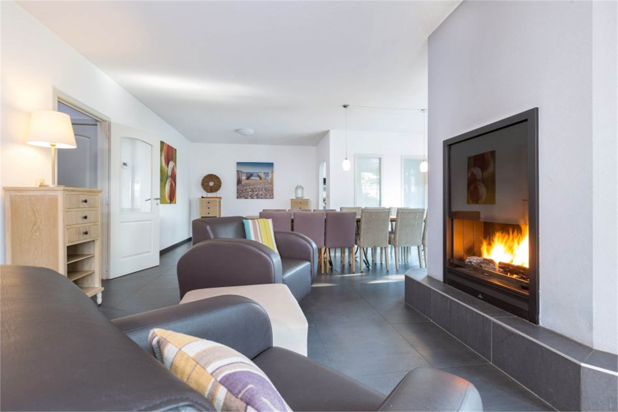 This detached, child-friendly family villa is suitable for 14 people. The living room features a fireplace and a smart TV. The kitchen is equipped with an oven, a coffee pad machine, a dishwasher and more. There are 7 bedrooms, two of which are located on the ground floor, all 7 with either 2 single beds. Upstairs and downstairs are 2 bathrooms, each with a toilet and a walk-in shower or bath. There is also a separate toilet. Furthermore, there are a washing machine, a tumble dryer, a garden with a furnished patio and six sunloungers. This accommodation has four parking spaces and Wi-Fi is available free of charge.