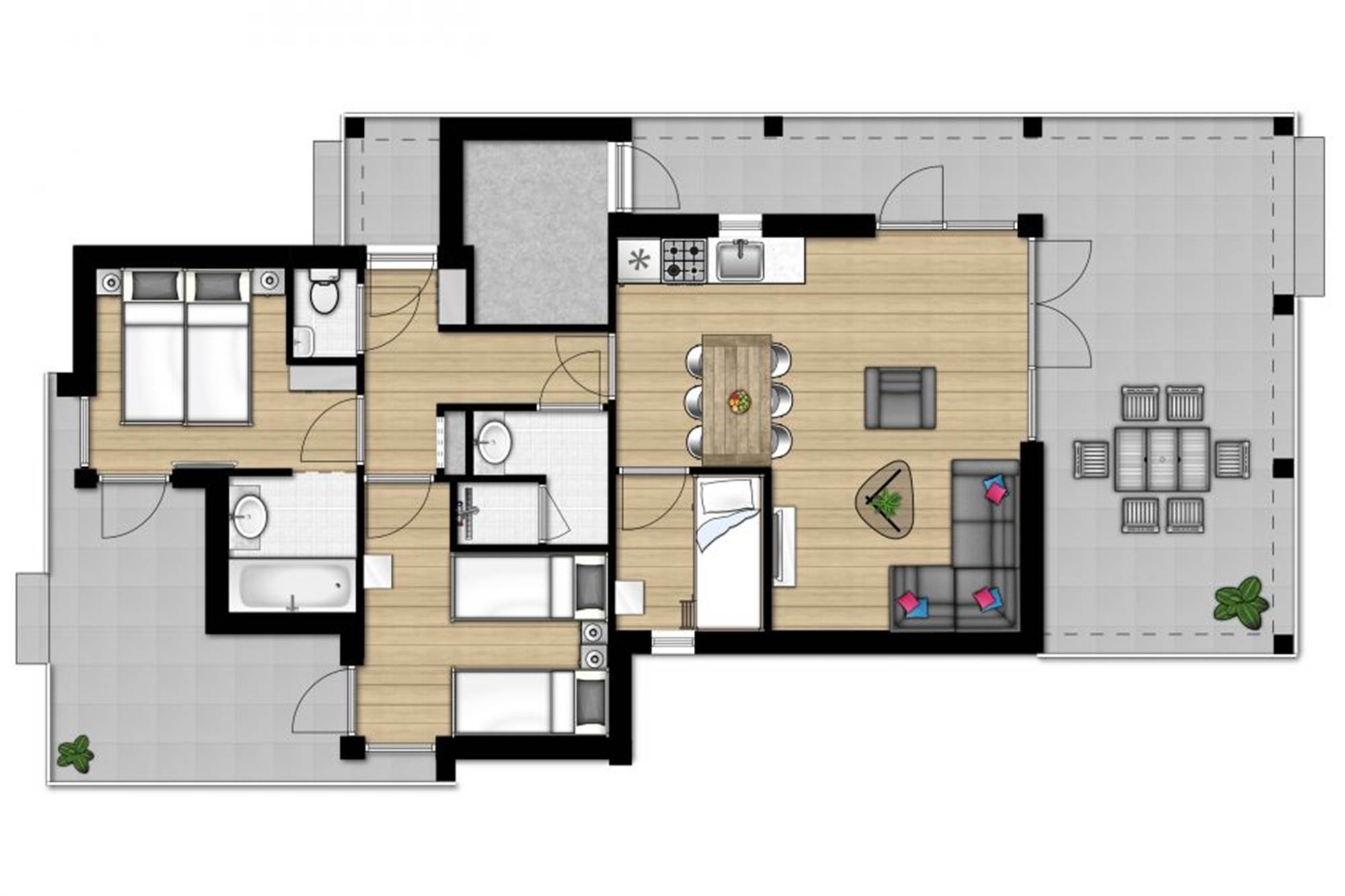 This detached bungalow is suitable for 6 persons. The living room is fitted with underfloor heating, smart-tv and soundbar. In the kitchen you’ll find, among others, a dishwasher and a coffee pad machine. In addition, there are 3 bedrooms, 2 of which with 2 single box spring beds and 1 bedroom with a bunk bed. One bedroom has a TV. There are 2 bathrooms as well, 1 of which with a bath and 1 with a shower. The hall has a separate toilet. The villa is also equipped with a furnished patio and has parking space for 2 cars and free use of Wi-Fi.