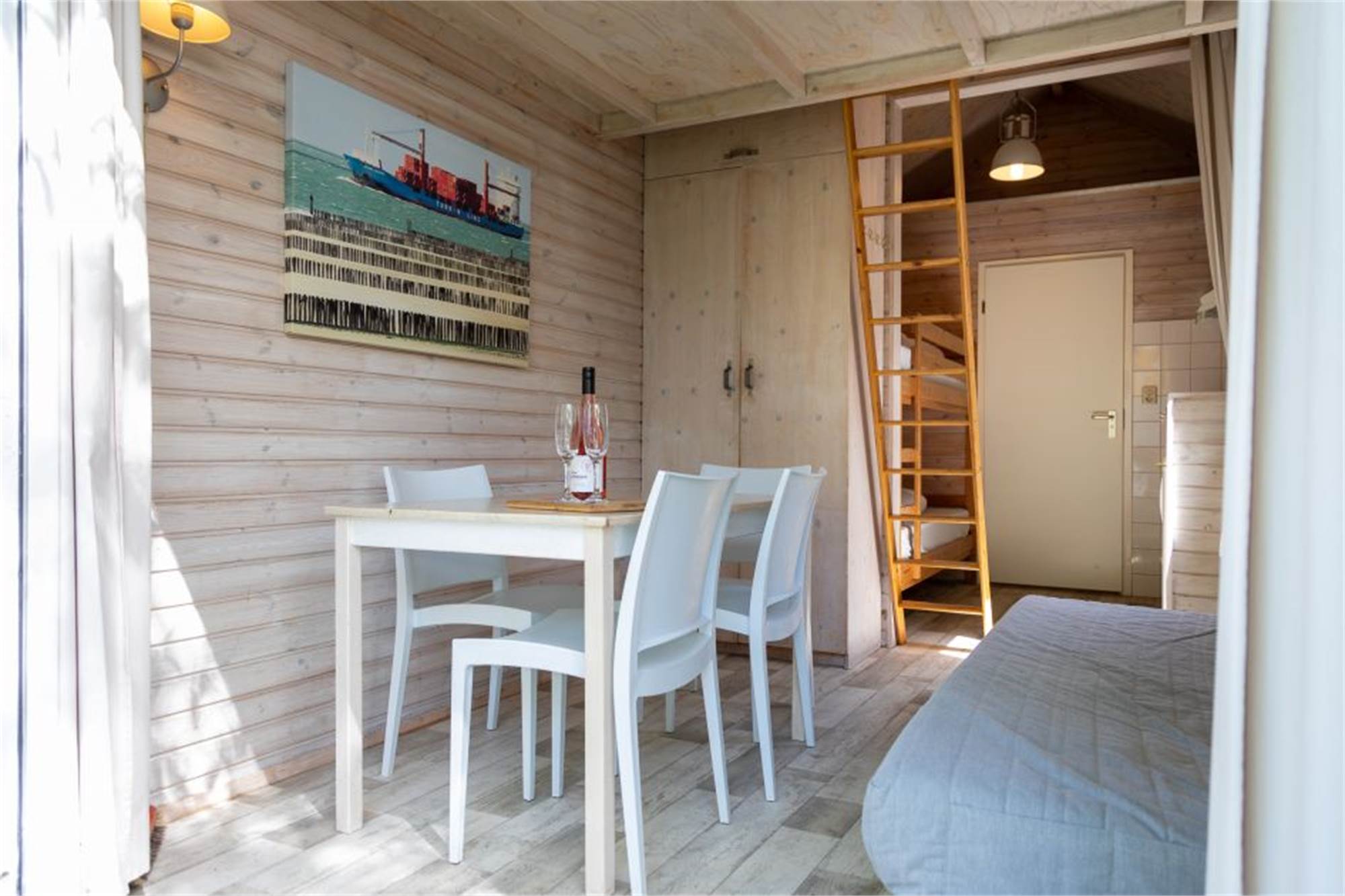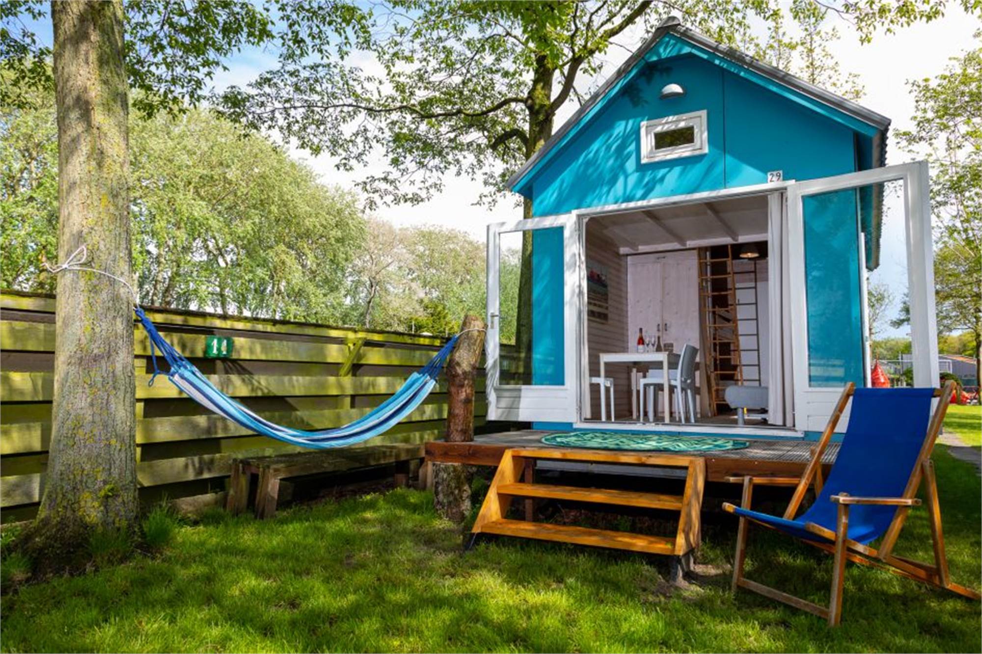 This tiny house for no more than 2 adults is located near the beach, and intended for serious campers. The house has a seating area, and the kitchen includes a fridge with freezer compartment and a 4-burner hob. The house has 1 bunk bed for with 2 single beds. The bathroom has a shower cubicle and a toilet. It has patio furniture too, and you can use the park's free Wi-Fi.
