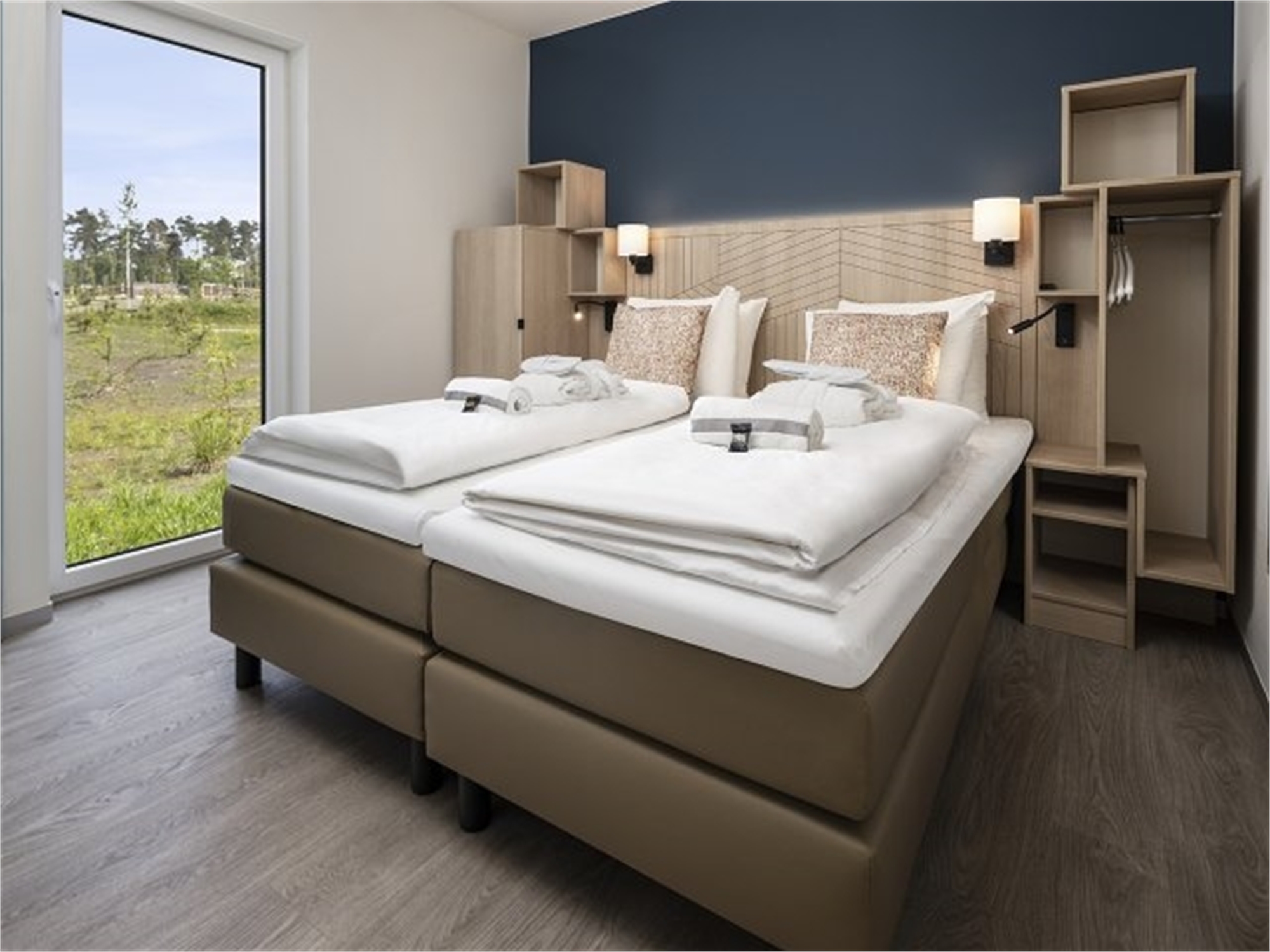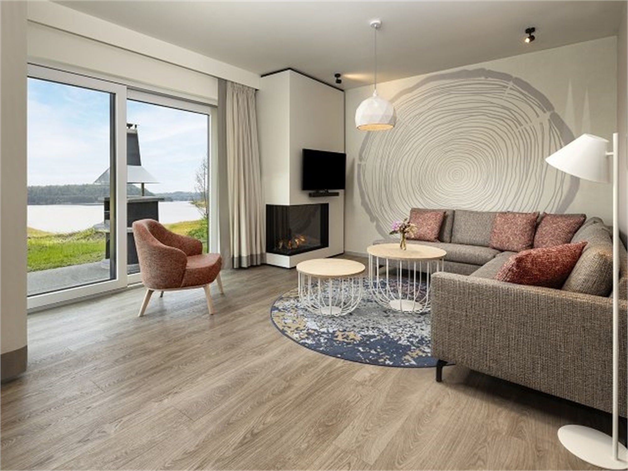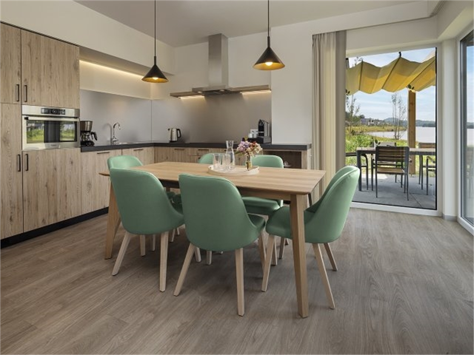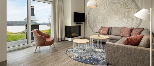 Sit down on your private covered terrace and enjoy panoramic views over the lake. In fact, all Lakeside cottages are right on the water. You will also have great views inside, courtesy of the large windows!