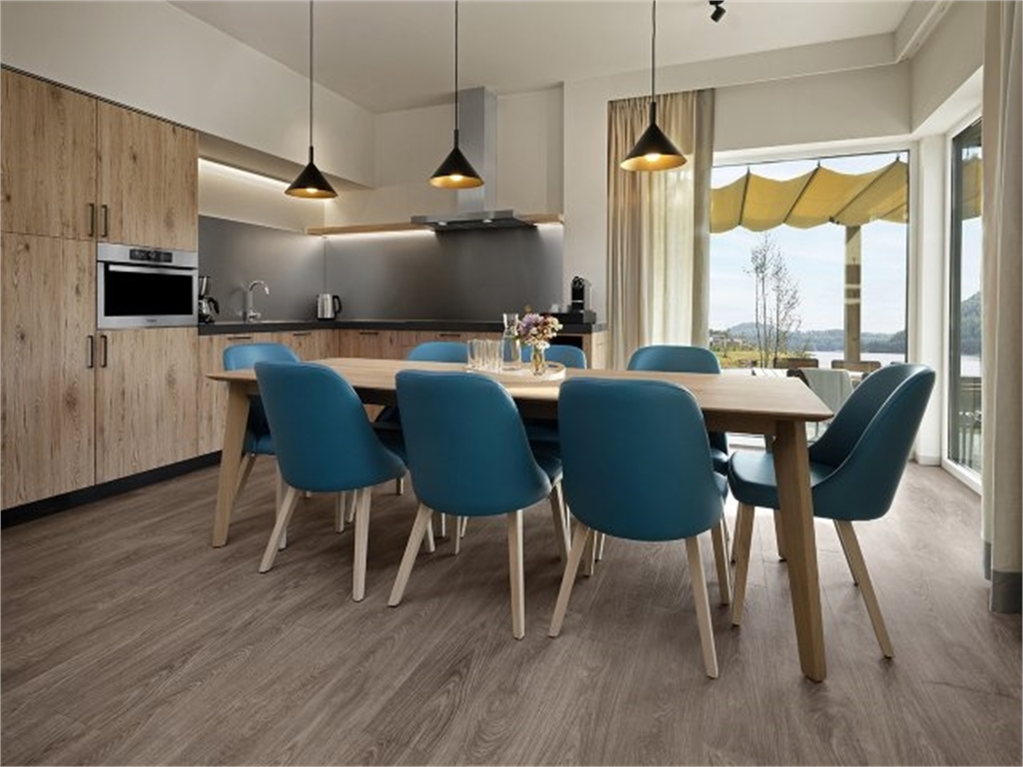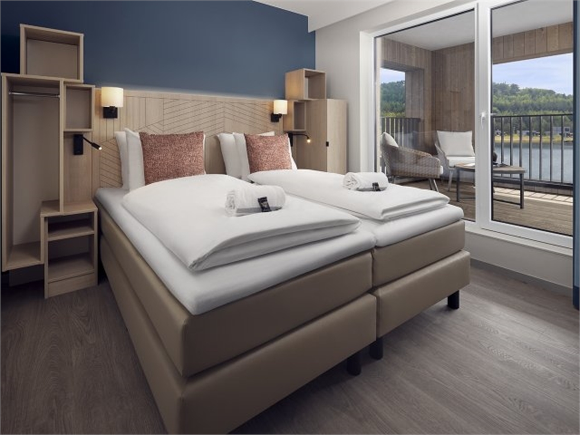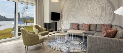Sit down on your private covered terrace and enjoy panoramic views over the lake. In fact, all Lakeside cottages are right on the water. You will also have great views inside, courtesy of the large windows!