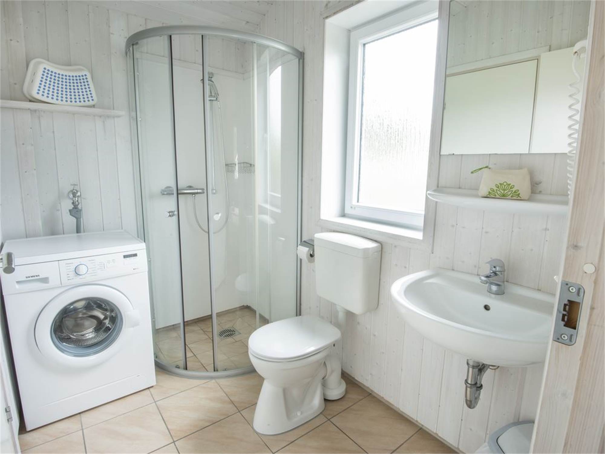 Bathroom with shower cubicle, washbasin and toilet