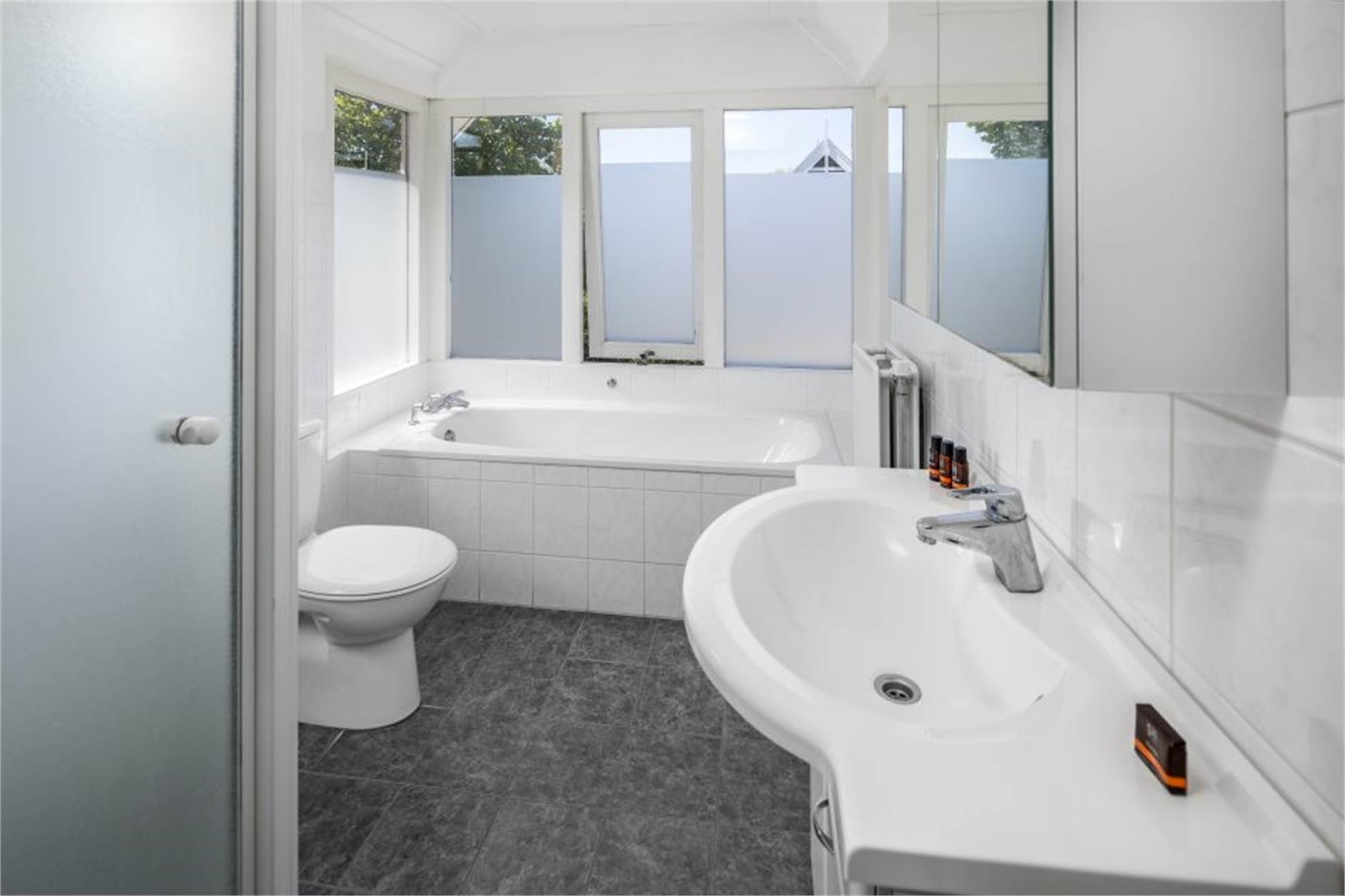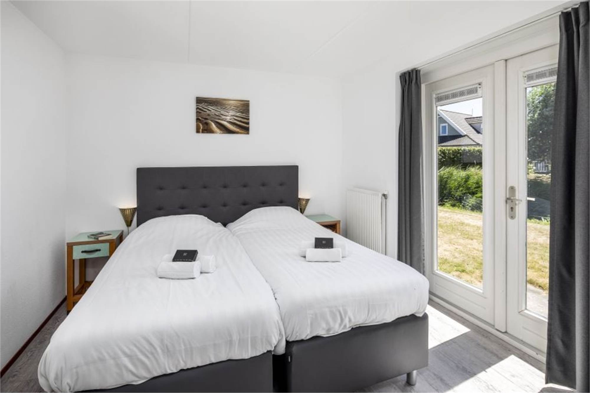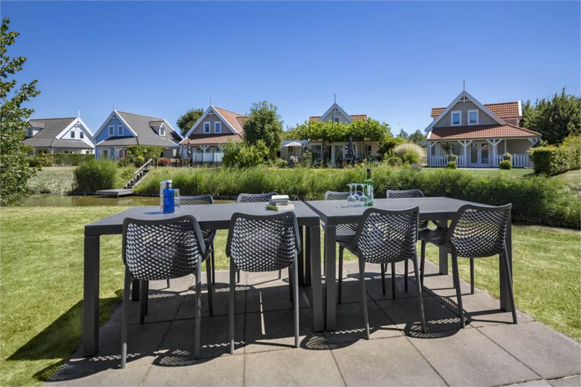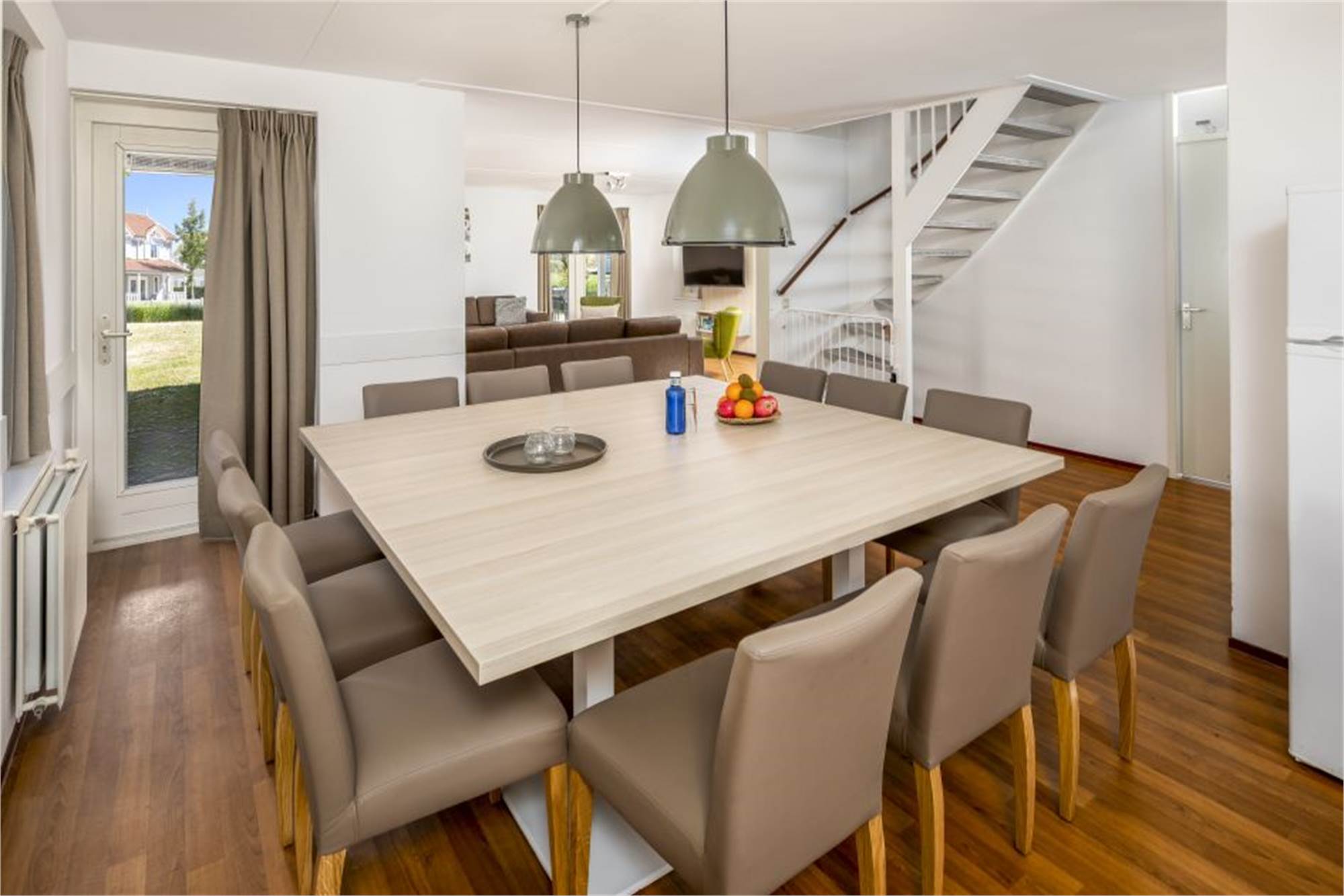 This detached villa on the water is suited for 12 persons. The atmospheric living room comes with a smart TV and patio doors. The adjacent kitchen offers a coffe maker, dish washer, microwave and a refrigerator with freezer. You will find a second refrigerator with freezer in the pantry. The ground floor is also home to a bedroom, bathroom with shower cabin and a separate toilet. The remaining five bedrooms are on the first floor. All bedrooms are fitted with extra long single box spring beds (90x210cm). The first floor also houses the other two bathrooms with shower cabin and tub. The villa is child-friendly and equipped with a two stair gates, a box, children’s bath, cot and high chair. The villa is attached to a roofed porch with furniture. The villa has parking space for 1 car, the use of Wi-Fi is free of charge and pets are allowed.