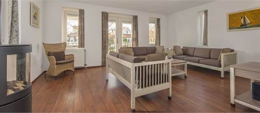 This villa sleeps nine. The ground floor features a spacious living area with a gas-powered fireplace, a smart TV and French doors leading to the porch. Kitchen equipped with a microwave oven, coffeemachine, kettle, fridge with freezing compartment and dishwasher. Two toilets and a separate store room. There are three bedrooms on the first floor, each with two single box spring beds. The villa has two bathrooms, one with a shower, whirlpool and sauna and one with a shower. There is another bedroom on the second floor with three single box spring beds. Bathroom with a shower and a washbasin.