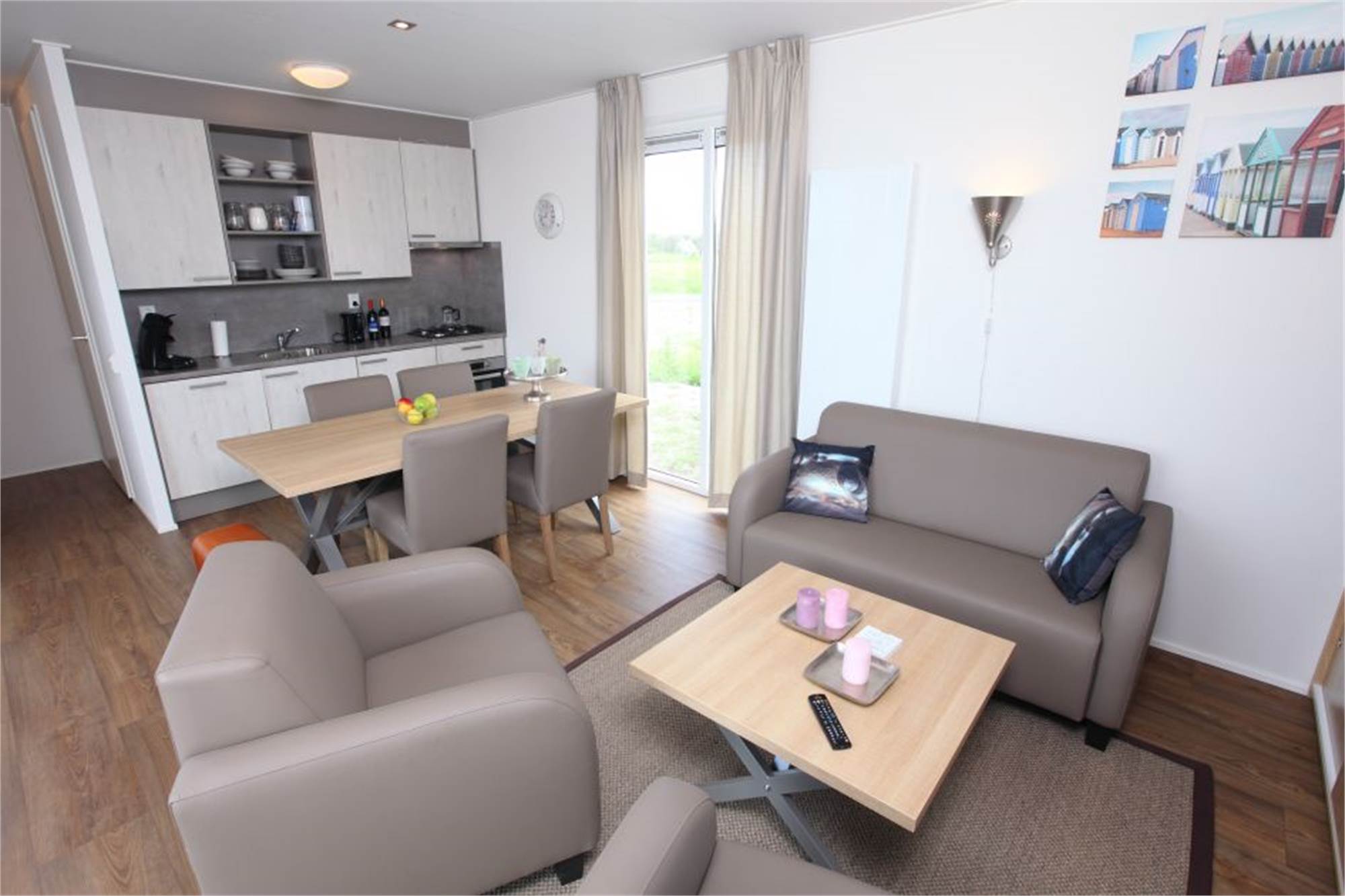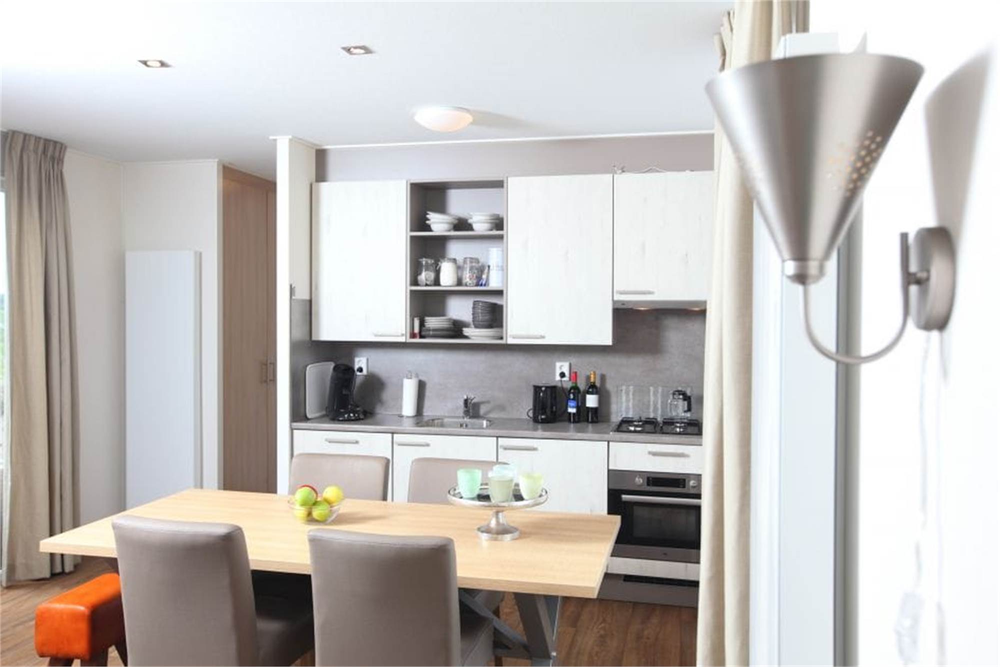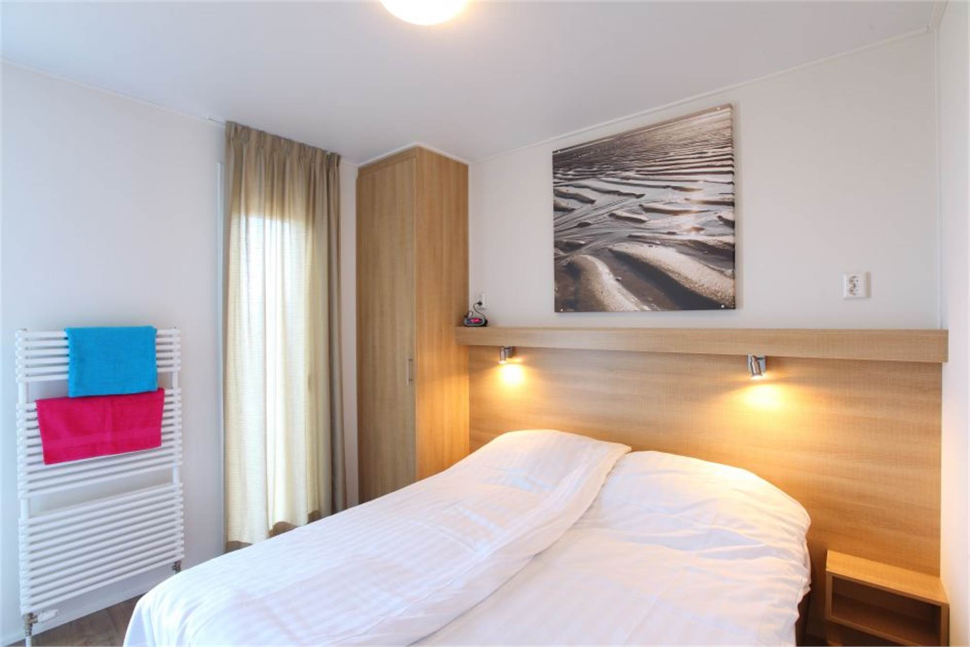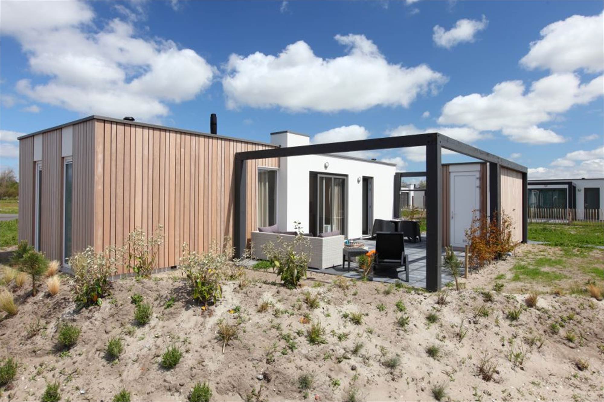 This ground floor, detached lodge is suited for 4 persons. The living room with smart TV has a separate dining corner and the kitchen offers you a dishwasher, microwave oven and coffee pad machine. There are 2 bedrooms with 2 single box spring beds each and there are 2 bathrooms with shower. The lodge also comes with a garden with furniture. You can make free use of the Wi-Fi and there is parking space for 1 car at the lodge. Some lodges are luxuriously equipped with a washing machine, dryer, television in the bedroom, lounge set and sun beds. These lodges can be booked with preference.