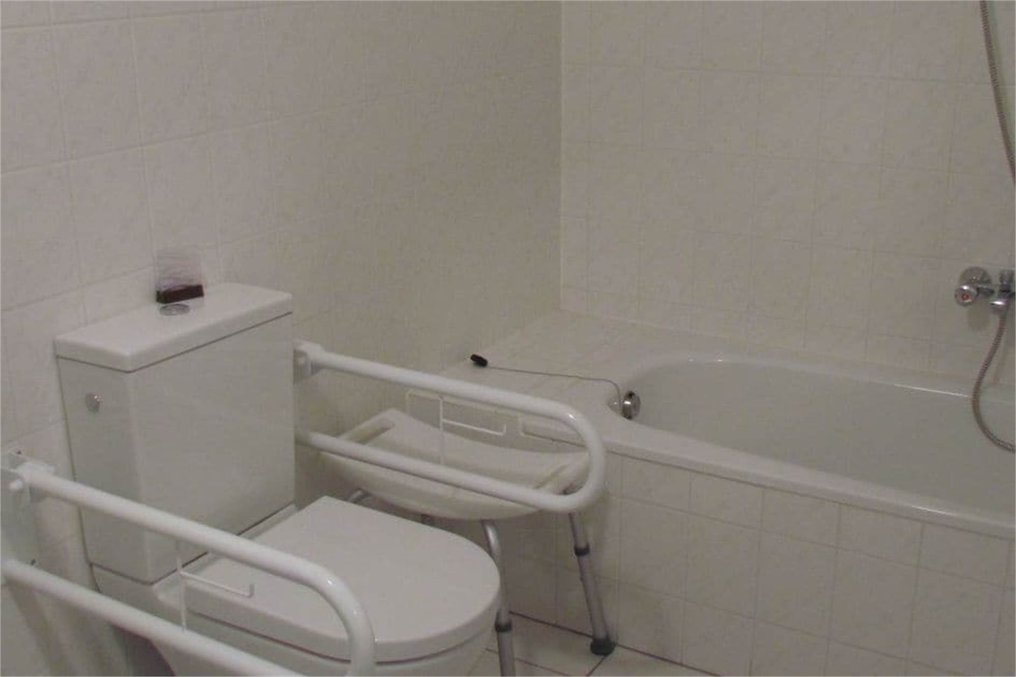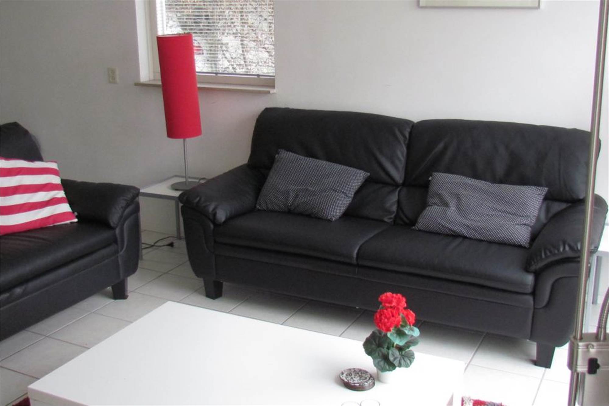 Ground floor: living room with flat screen TV with German TV-channels. Open kitchen with refrigerator, coffee maker, kettle and dishwasher. Bathroom with modified toilet, bath and an open shower with a mobile shower chair. Bedroom with two high/low beds. Fish decking.