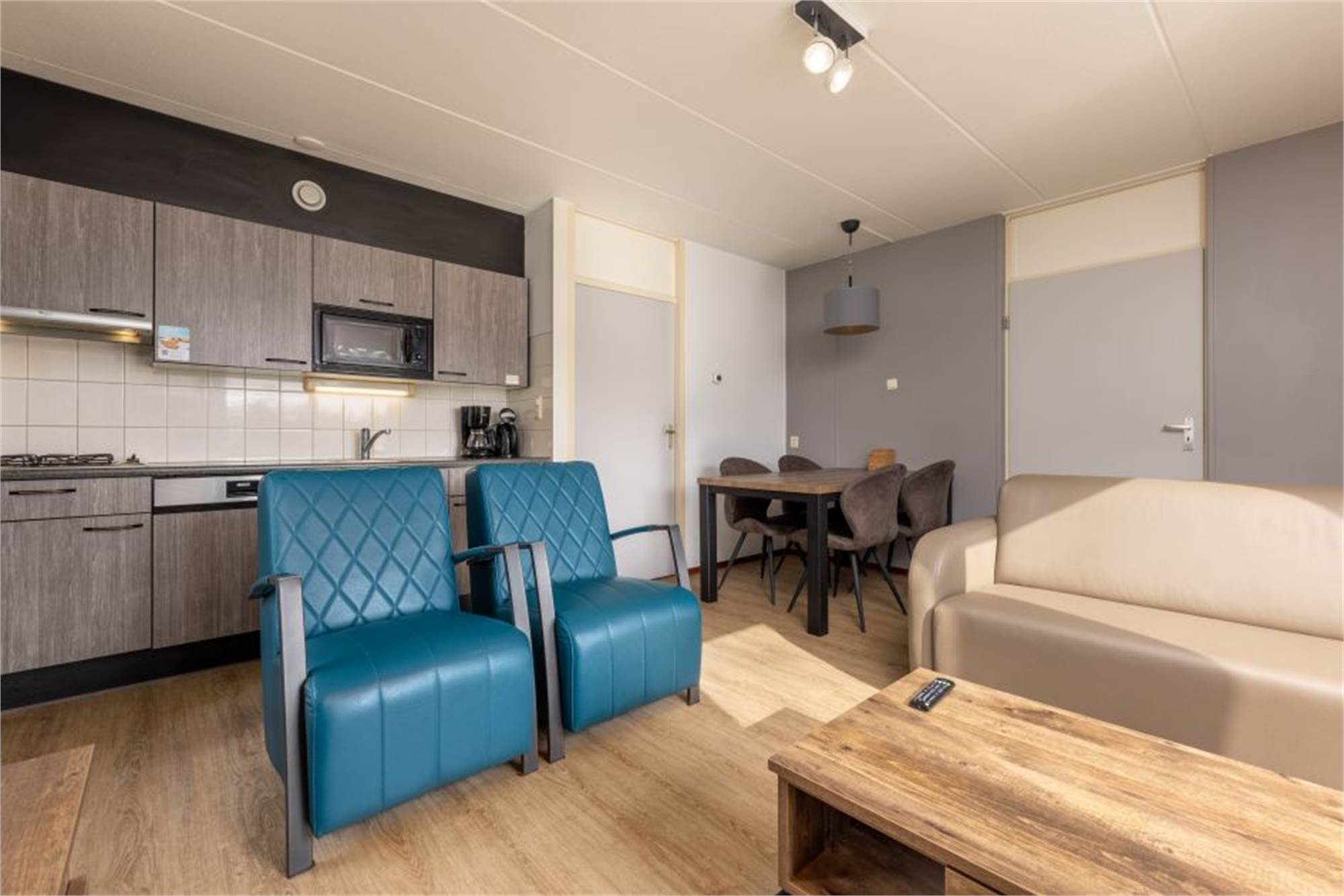 This restyled single-storey bungalow sleeps 4 and has a living room with a television set and a fireplace. The open-plan kitchen is equipped with a dishwasher, a combination microwave, a filter coffee maker and more. There are 2 bedrooms with 2 single beds each. In addition, there is a bathroom with a shower and a toilet. There is also a separate toilet. The garden has a furnished patio and parking space is available near the bungalow. Wi-Fi is available free of charge.