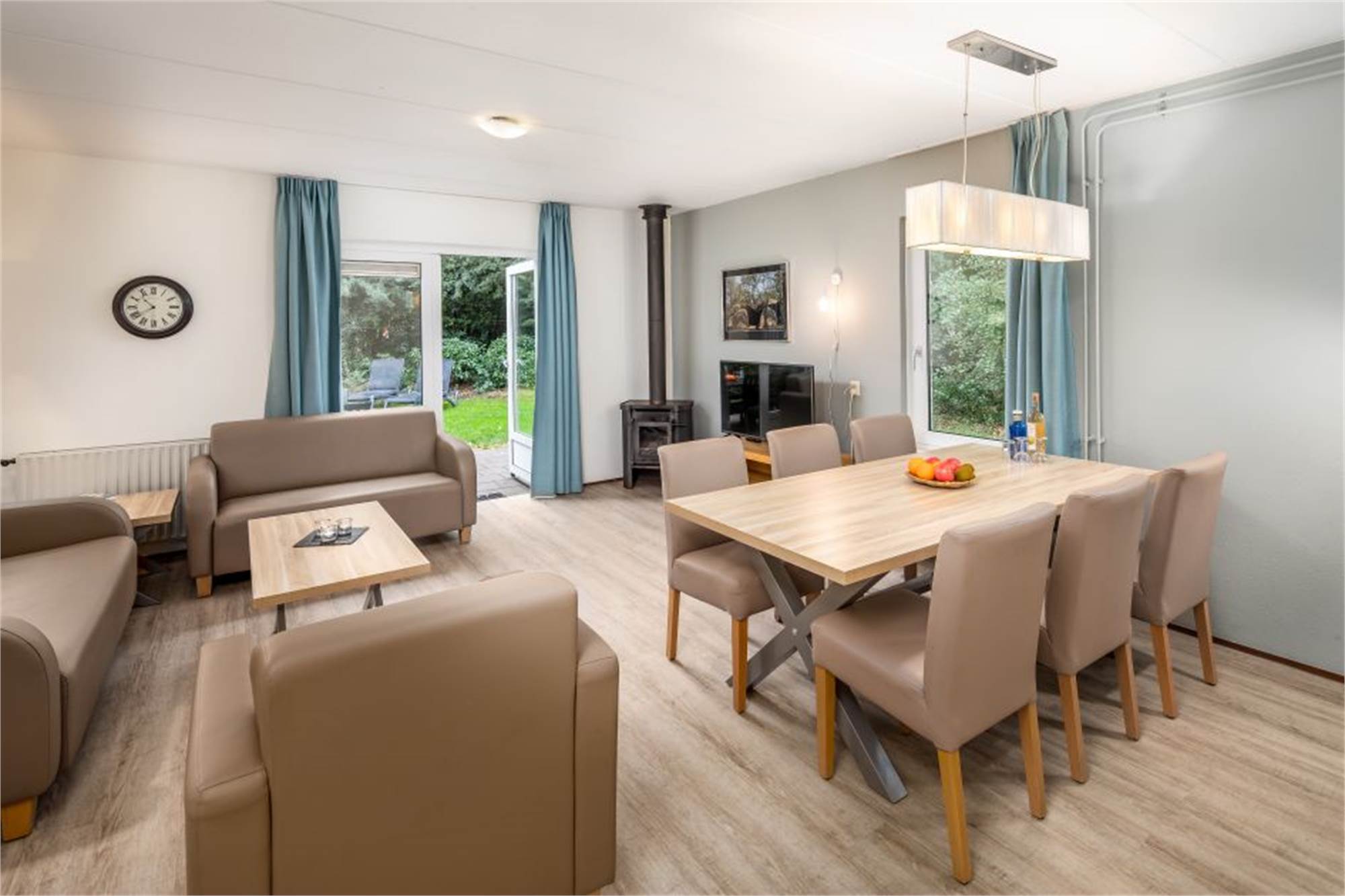 This restyled bungalow is suitable for 6 persons. In the kitchen you will find a microwave oven, fridge with freezer compartment and a dishwasher, among others. The living room has a fireplace/wood burner. The bungalow has 3 bedrooms, 2 of which have 2 single box spring beds and 1 bedroom has a bunkbedor or 2 single box spring beds. There is also a furnished terrace and use of Wi-Fi is free of charge.