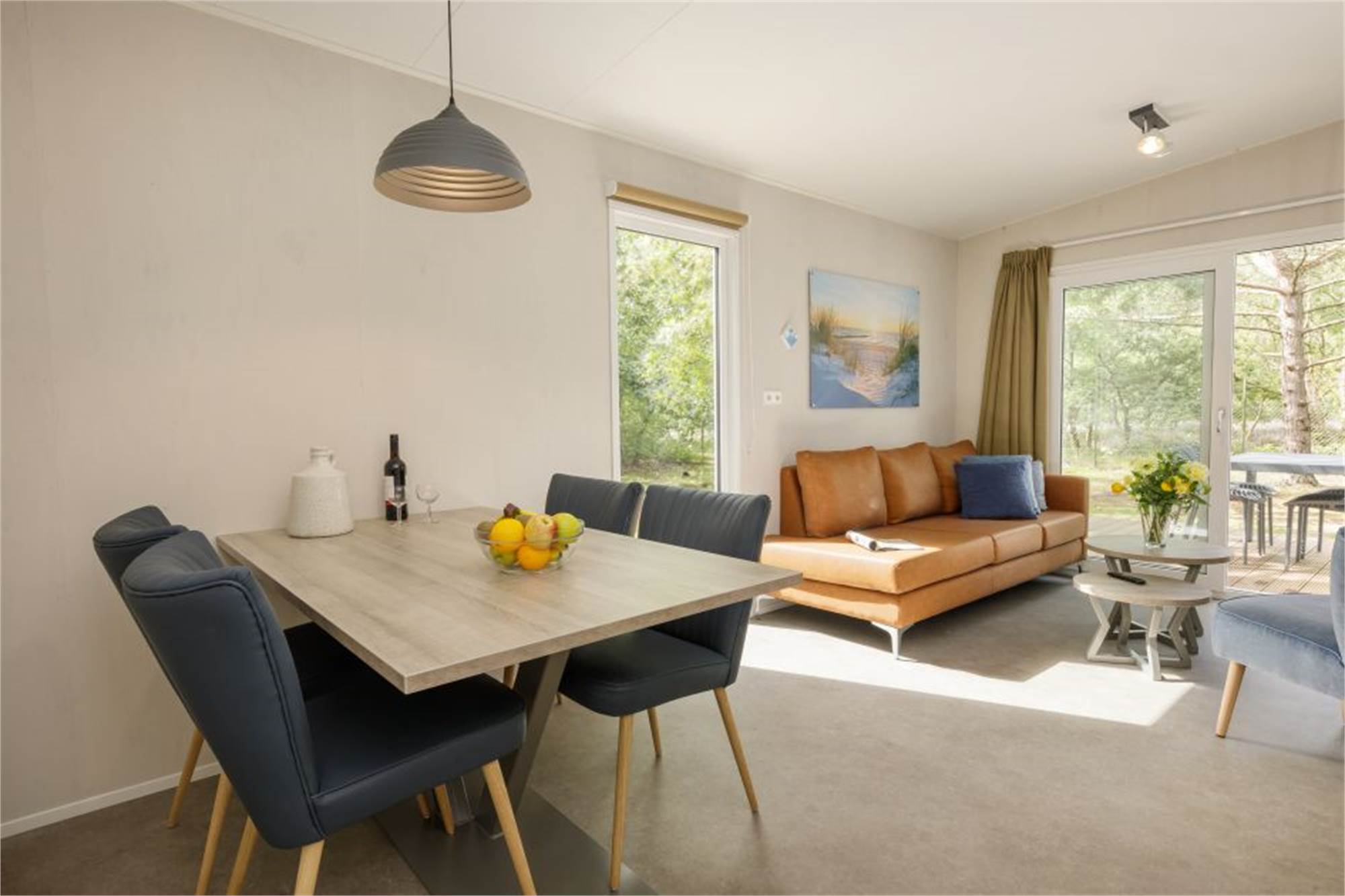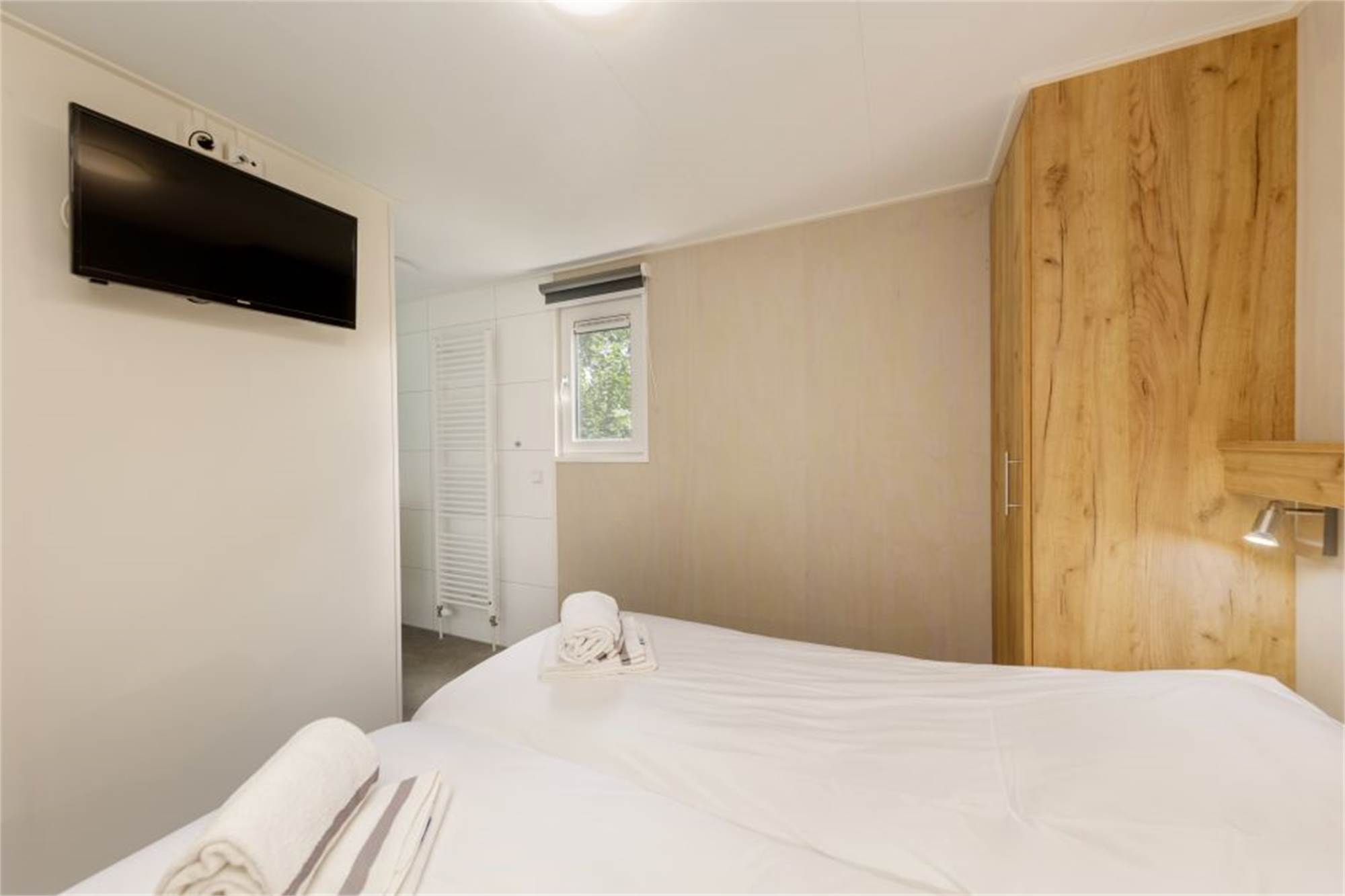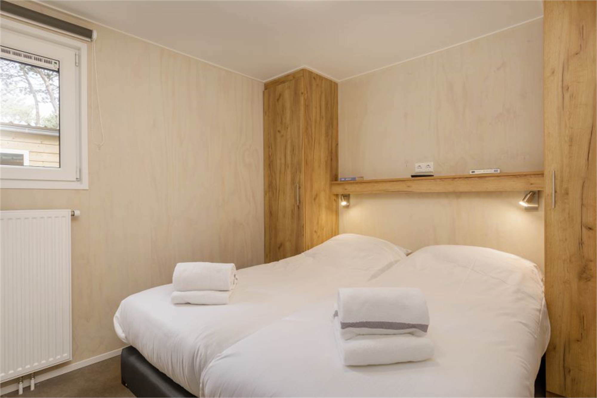 This new chalet is on the ground floor and suitable for 4 persons. The living room is equipped with a smart-tv and the kitchen has a combi microwave, dishwasher and coffee pad machine. There are 2 bedrooms, both rooms have 2 single beds. In this chalet there are 2 bathrooms with walk-in shower, the toilet is separate. Outside you will find a terrace with garden furniture.