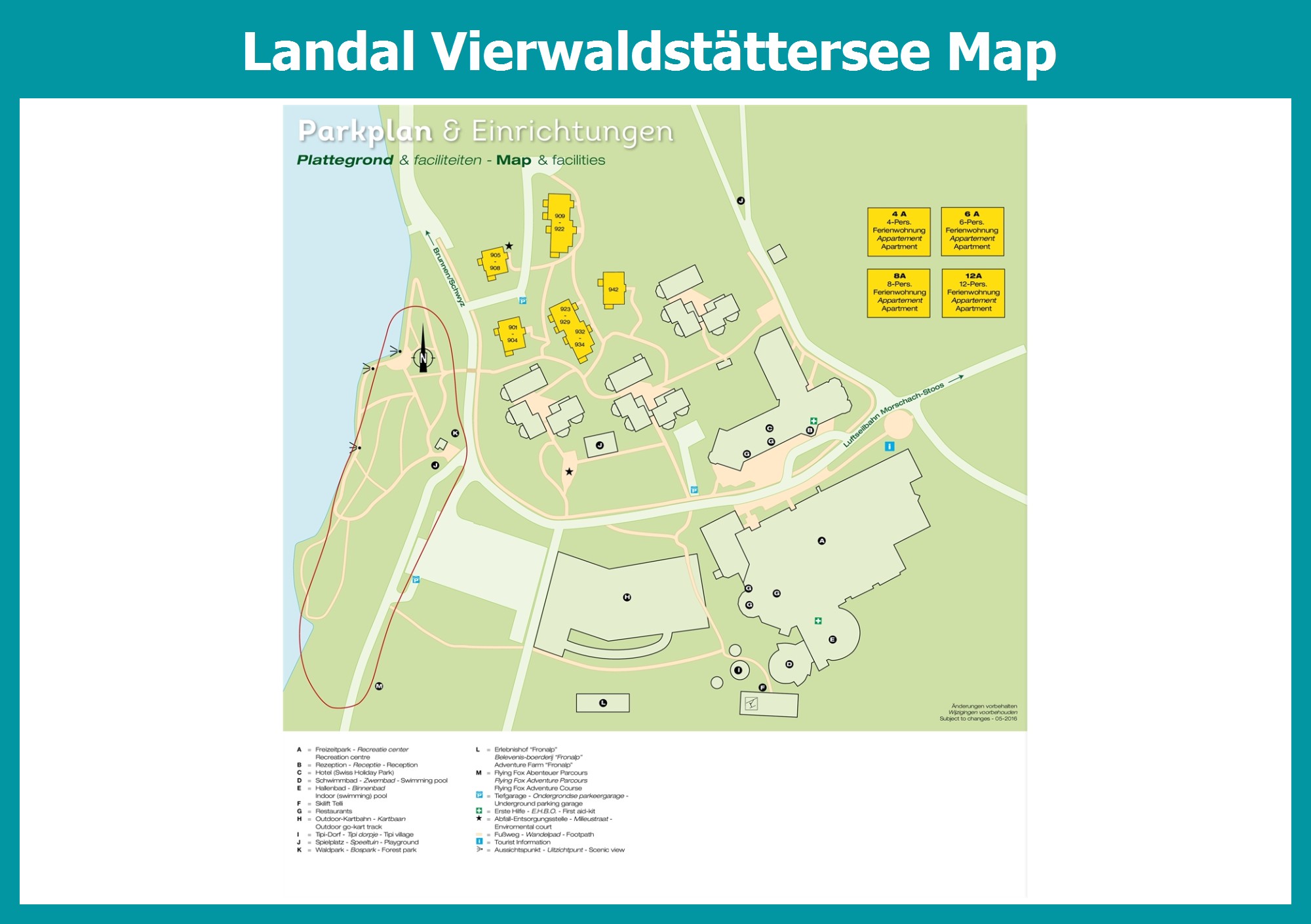 Up-to-date and comprehensive village map of Landal Vierwaldstättersee with all accommodations and facilities, also available as PDF.
