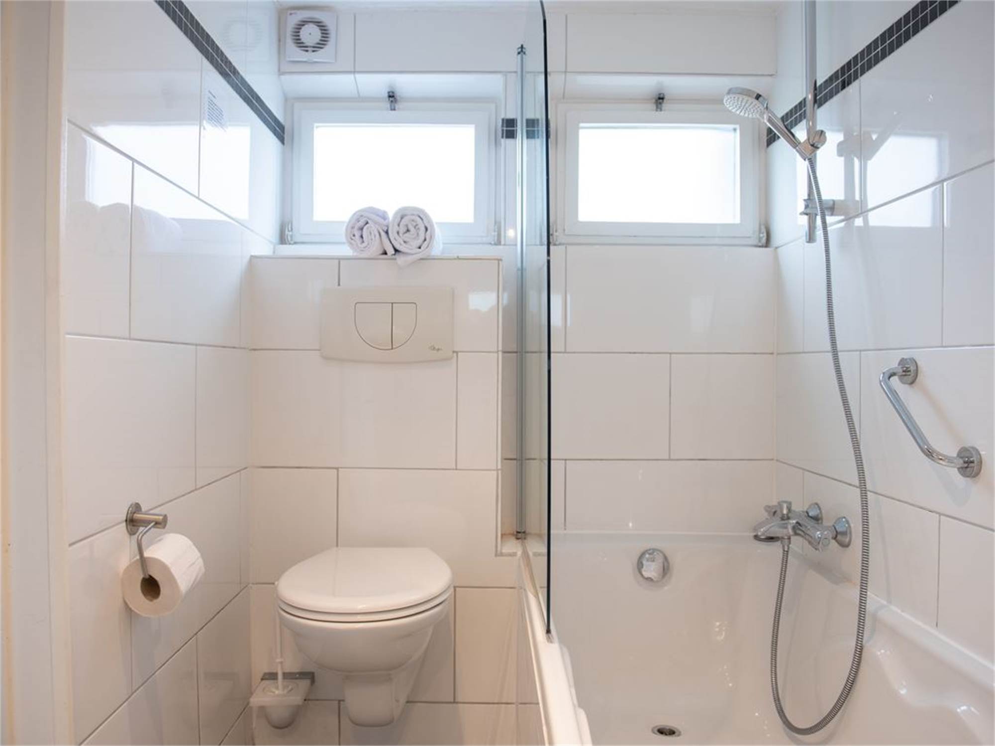 Bathroom with bathtub or shower cubicle, washbasin and toilet