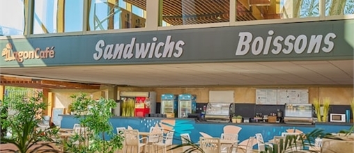 The Lagon Café, at the heart of Aqua Mundo, satisfies both small and big appetites between two waterslides! Sandwiches, salads, pastries, smoothies, ice creams... Refuel and get back to the fun!