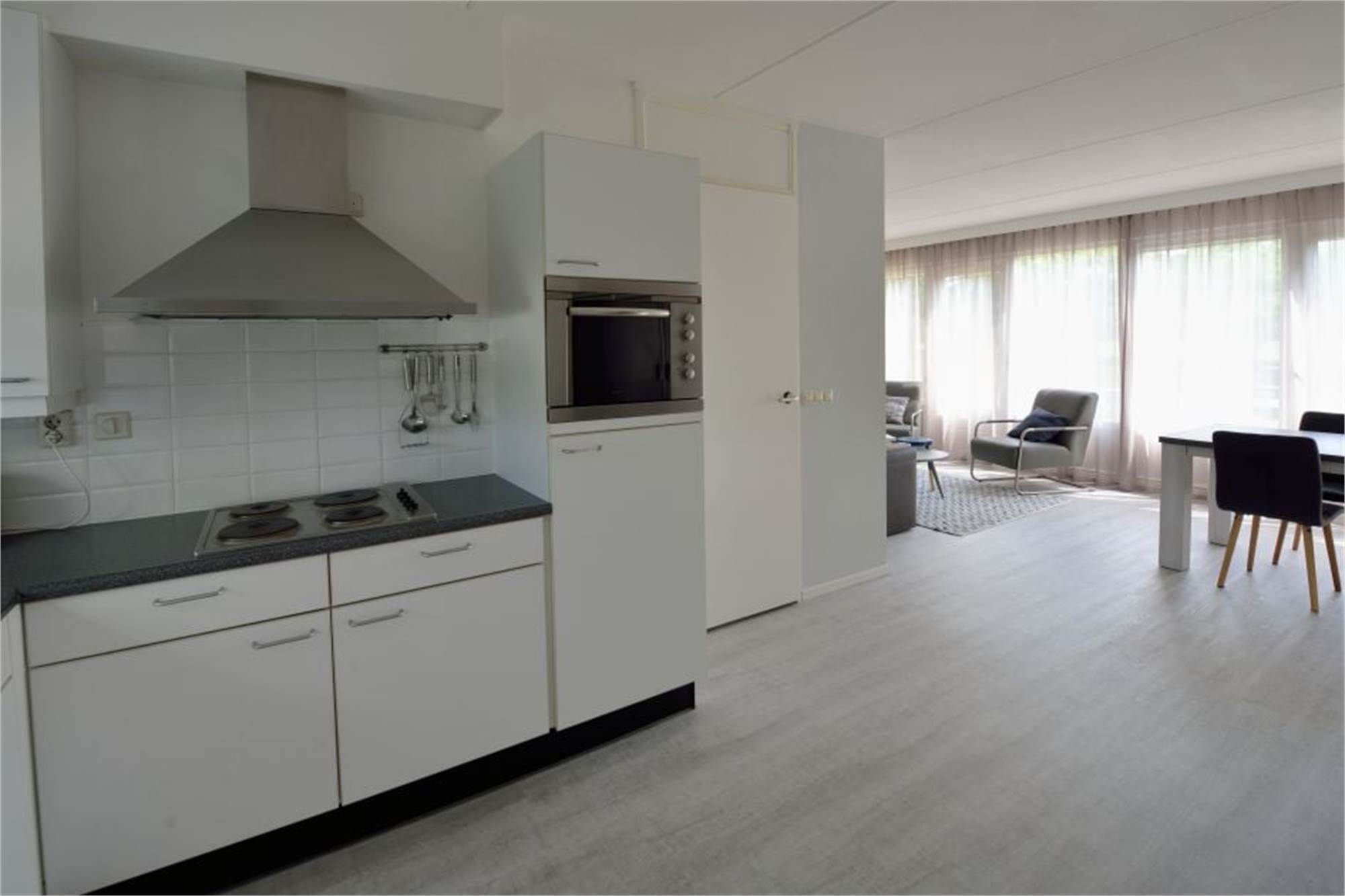 Ground floor: hallway and separate toilet. Spacious living room with French windows and fully-furnished open-plan kitchen. Bathroom with washbasin, shower and/or bath. Separate store room.