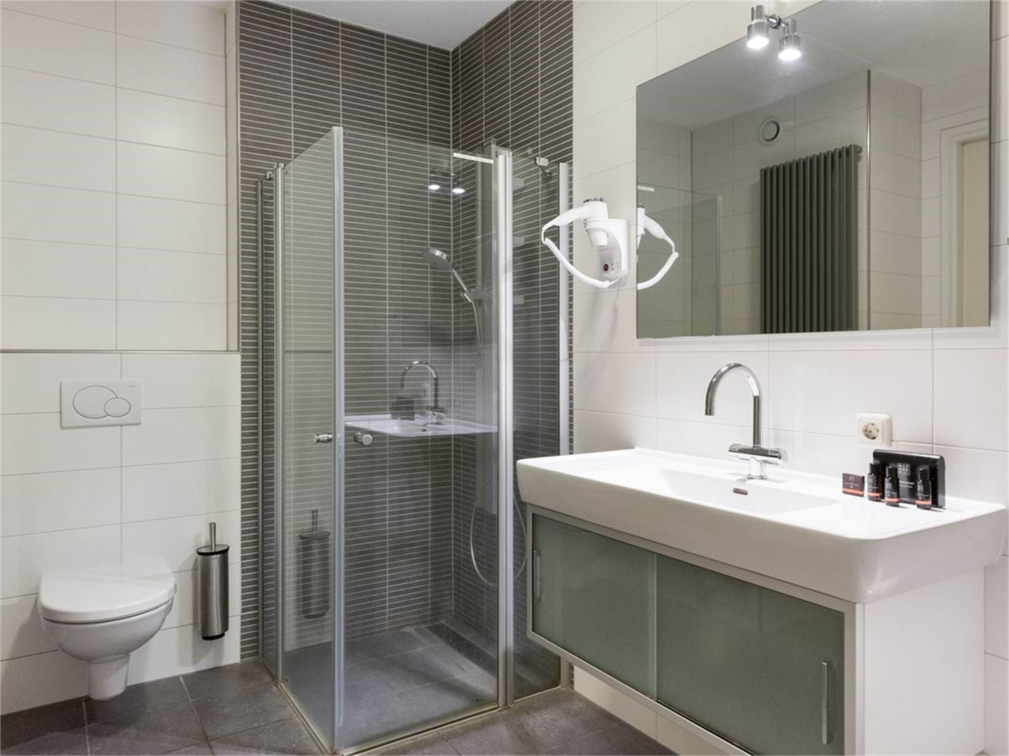 Bathroom with jacuzzi bathtub, massage shower, toilet and washbasin