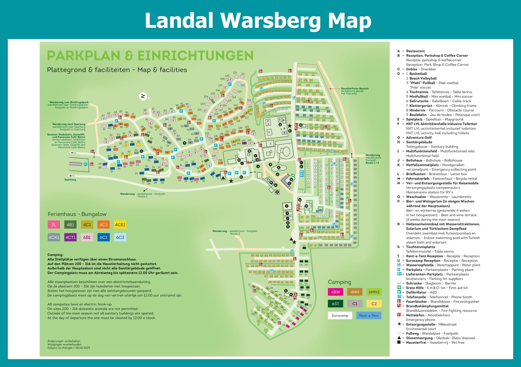 Up-to-date and comprehensive village map of Landal Warsberg with all accommodations and facilities, also available as PDF.