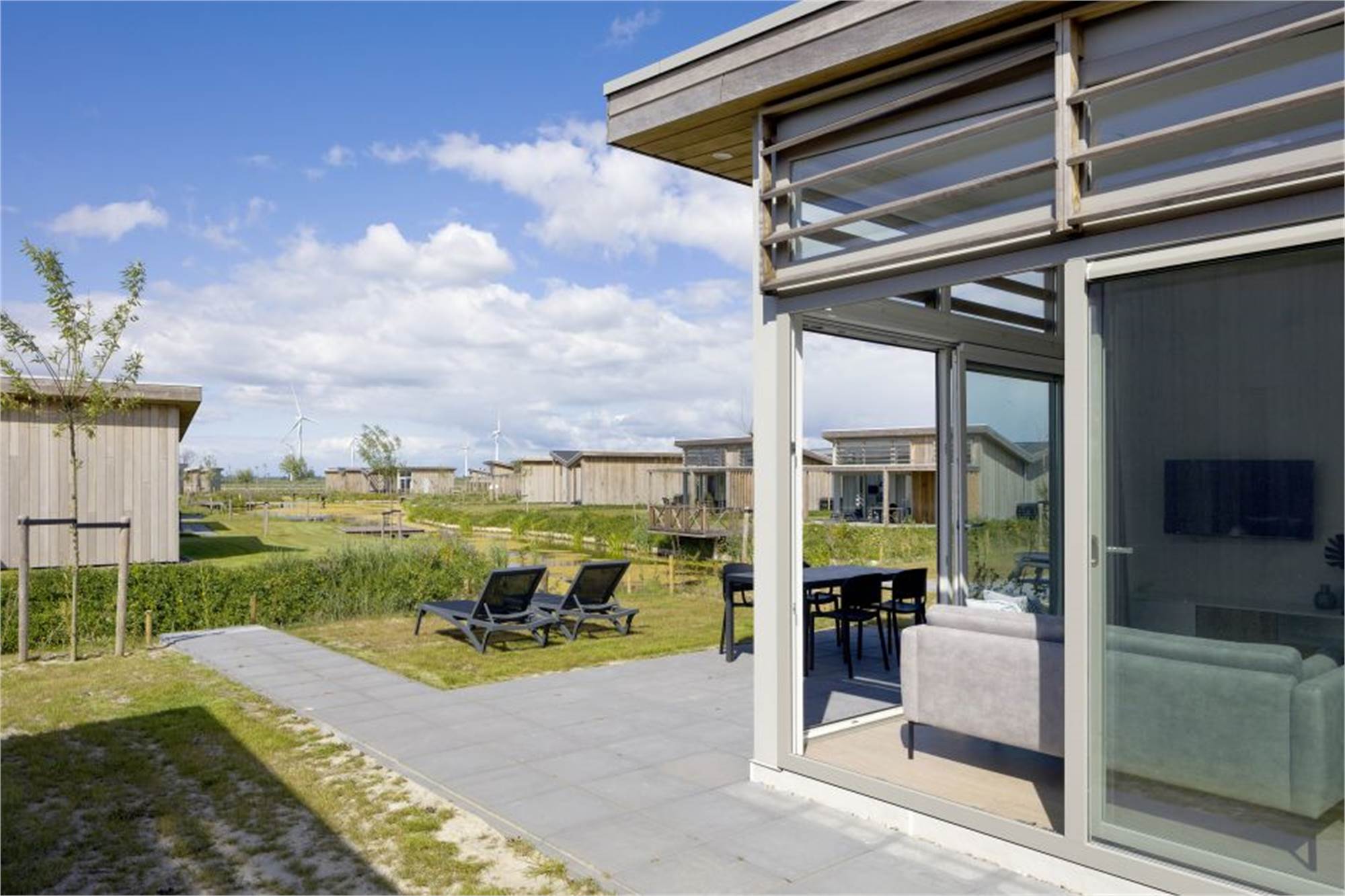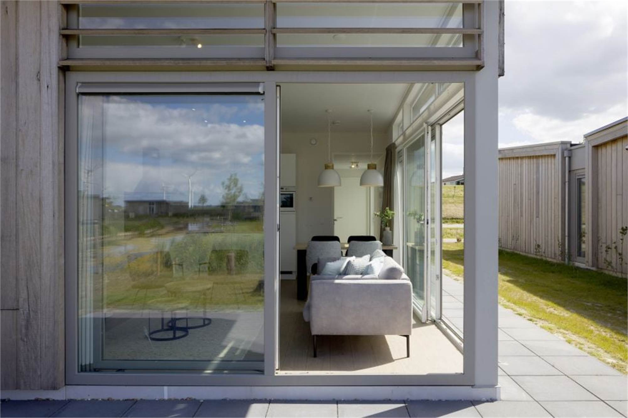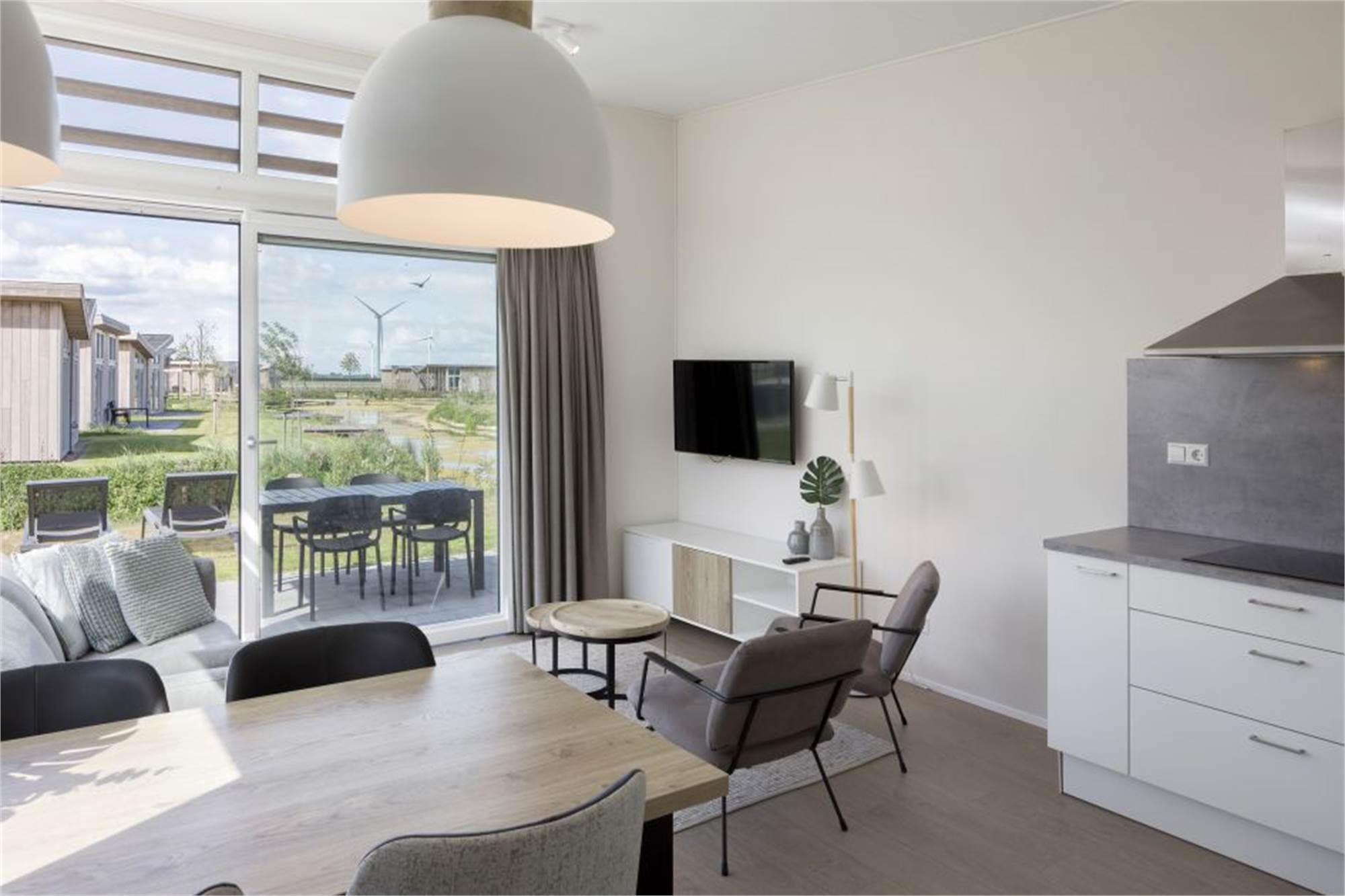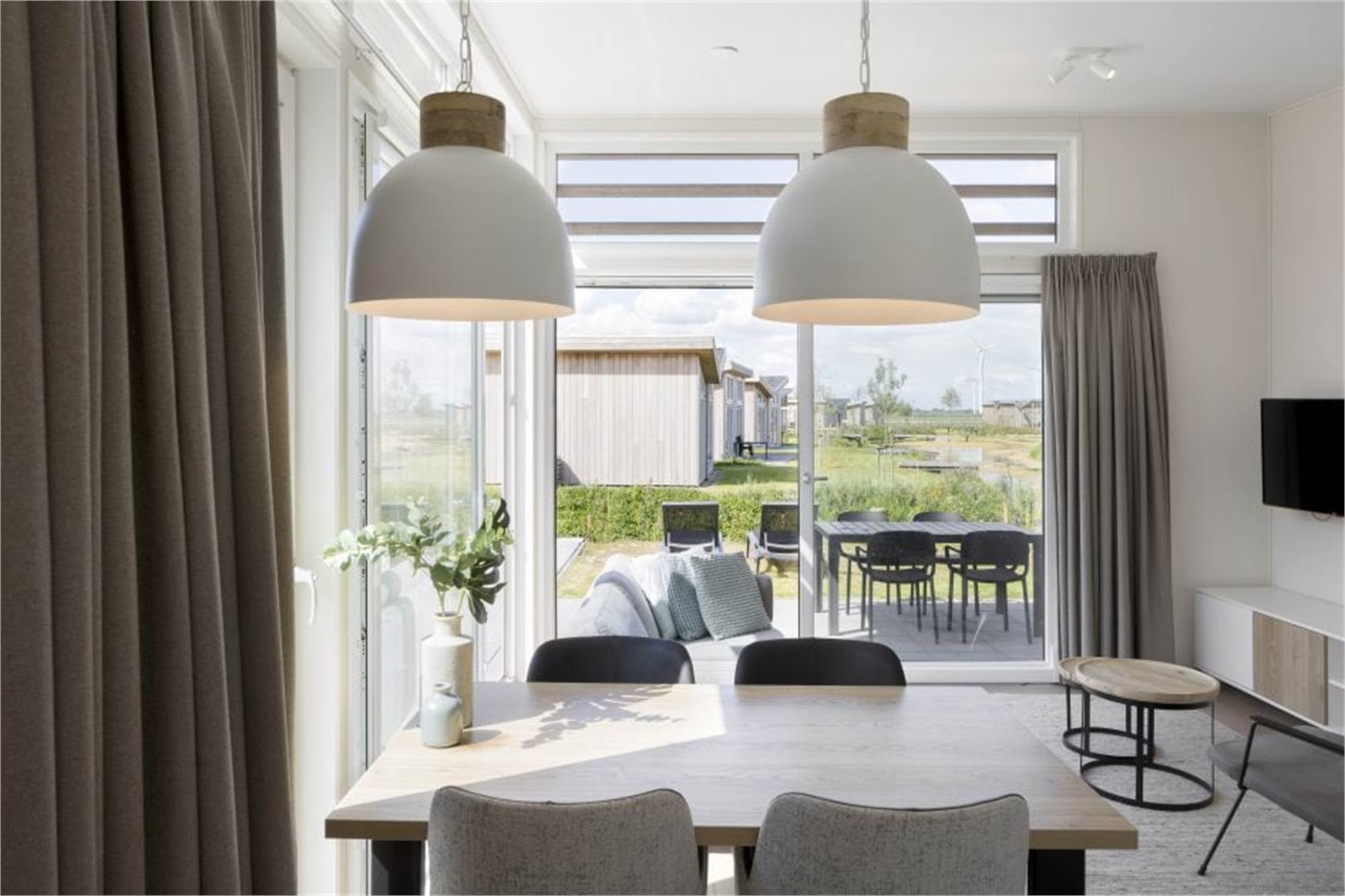 This detached lodge located by the water is suitable for 4 persons. In the living room you will find a sitting room with smart-tv. The kitchen is fitted with, among others, a dishwasher, refrigerator with freezer compartment, coffee cup machine and microwave oven. There are 2 bedrooms, both with 2 box spring beds. In addition, the bungalow has a bathroom with walk-in shower. Both the bathroom as well as the living room have underfloor heating. You have free use of WIFI.