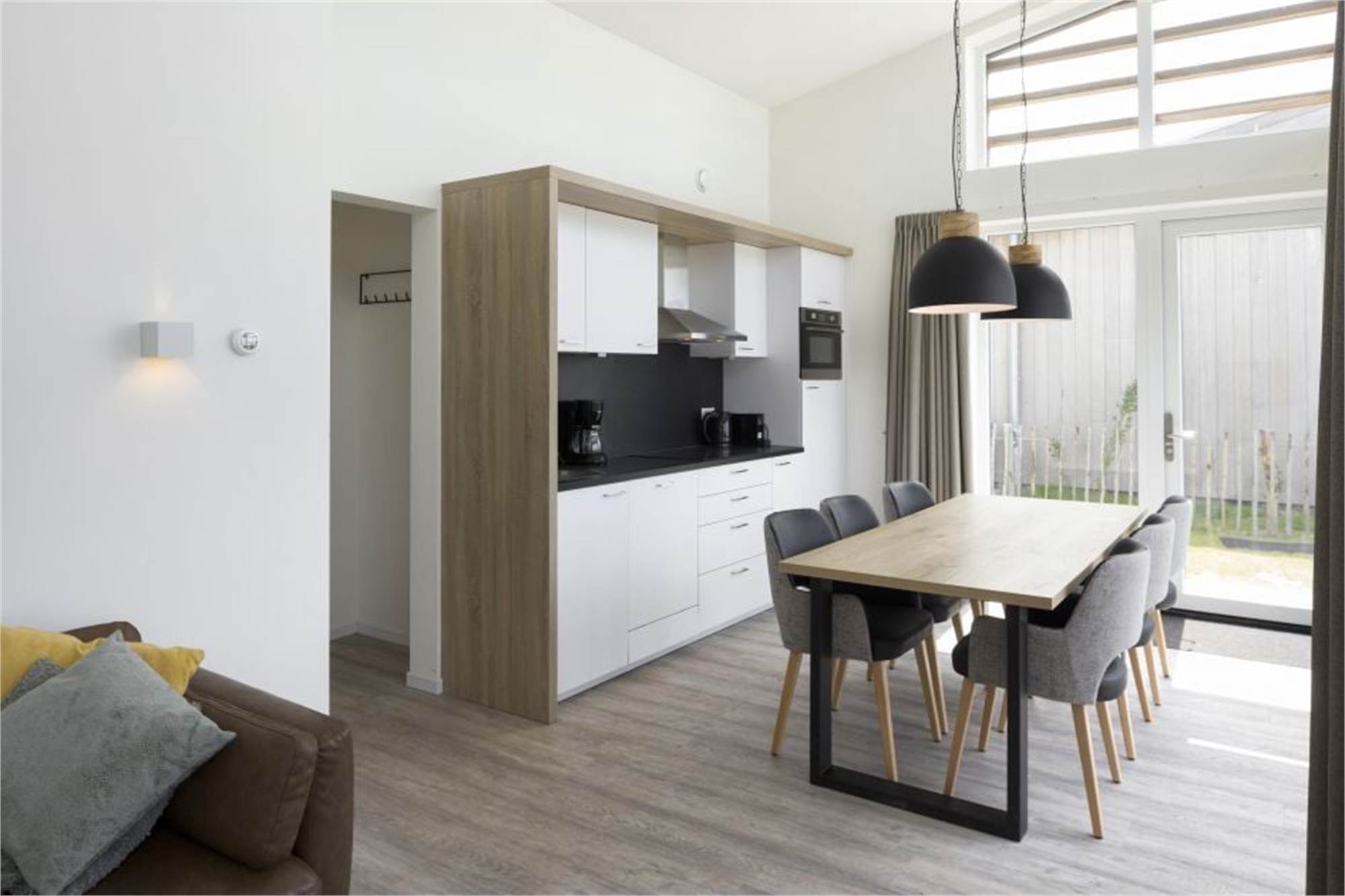 This detached bungalow is suitable for 6 persons. In the living room you will find a sitting room with smart-tv. The kitchen is fitted with, among others, a dishwasher, refrigerator with freezer compartment, coffee cup machine and microwave oven. Downstairs are 2 bedrooms with 2 single beds each. There is also a low-ceilinged open loft with 2 single beds, which can be accessed from the living room using an almost straight flight of stairs. The bungalow has 2 bathrooms with walk-in shower. Both the bathrooms as well as the living room have underfloor heating. You have free use of WIFI.